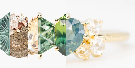 Estrella Ring with a 1.06 Carat Rose Cut Oval Salt and Pepper Diamond and White Accent Diamonds in 14k Green Gold - Ready to Size and Ship
