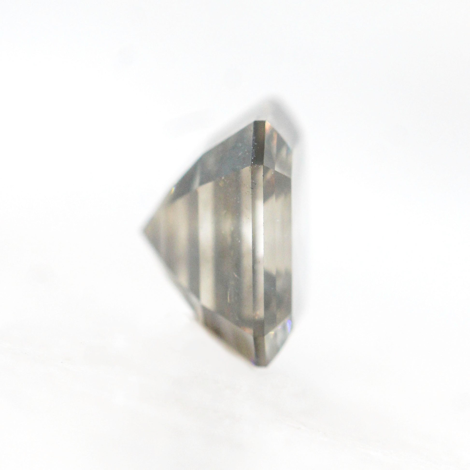 - Color and notes: Crisp champagne stone with bright golden highlights. The step cut emphasizes the varied shades of brown throughout. Nice clarity with a white shimmer. Appears more gray or more champagne depending on the lighting.
