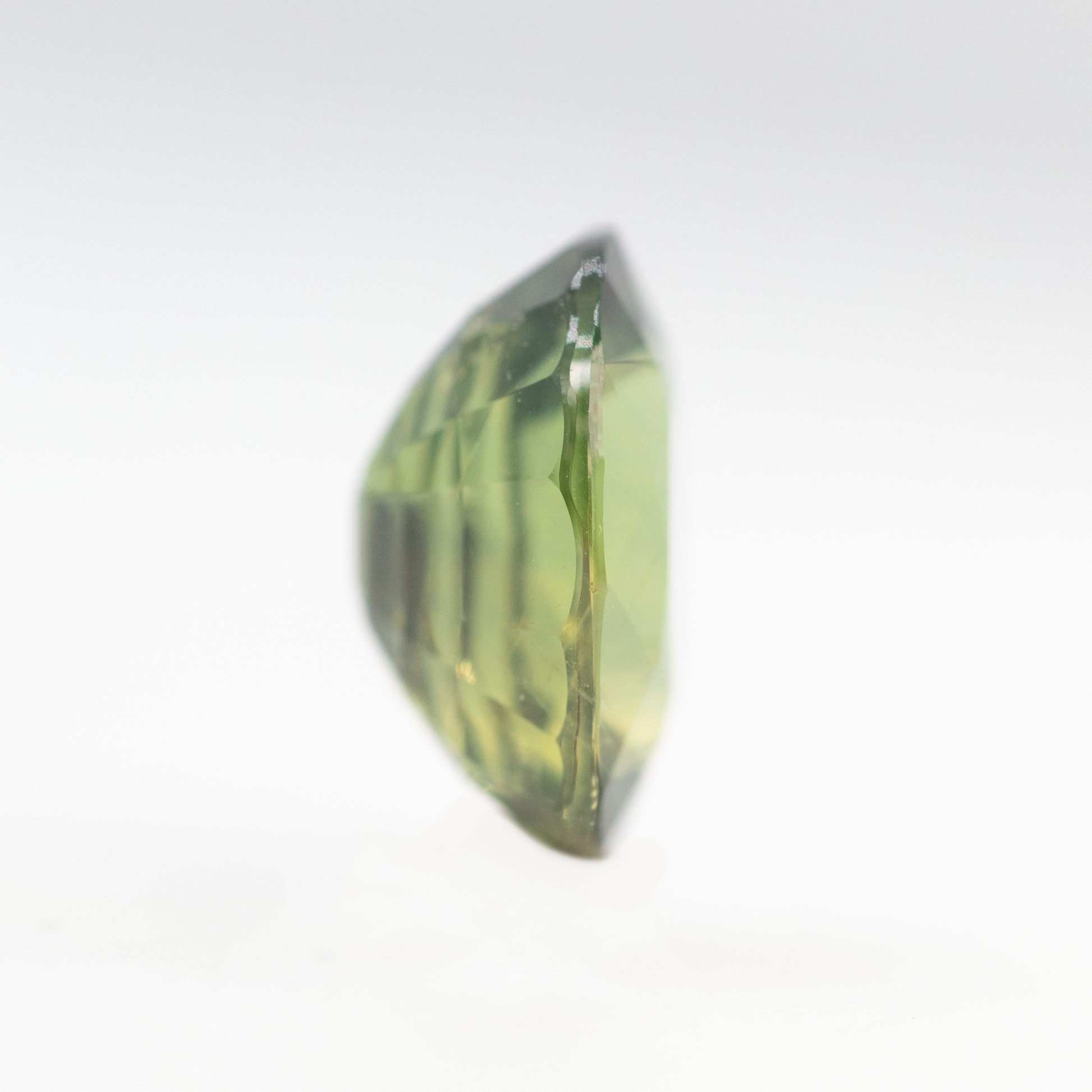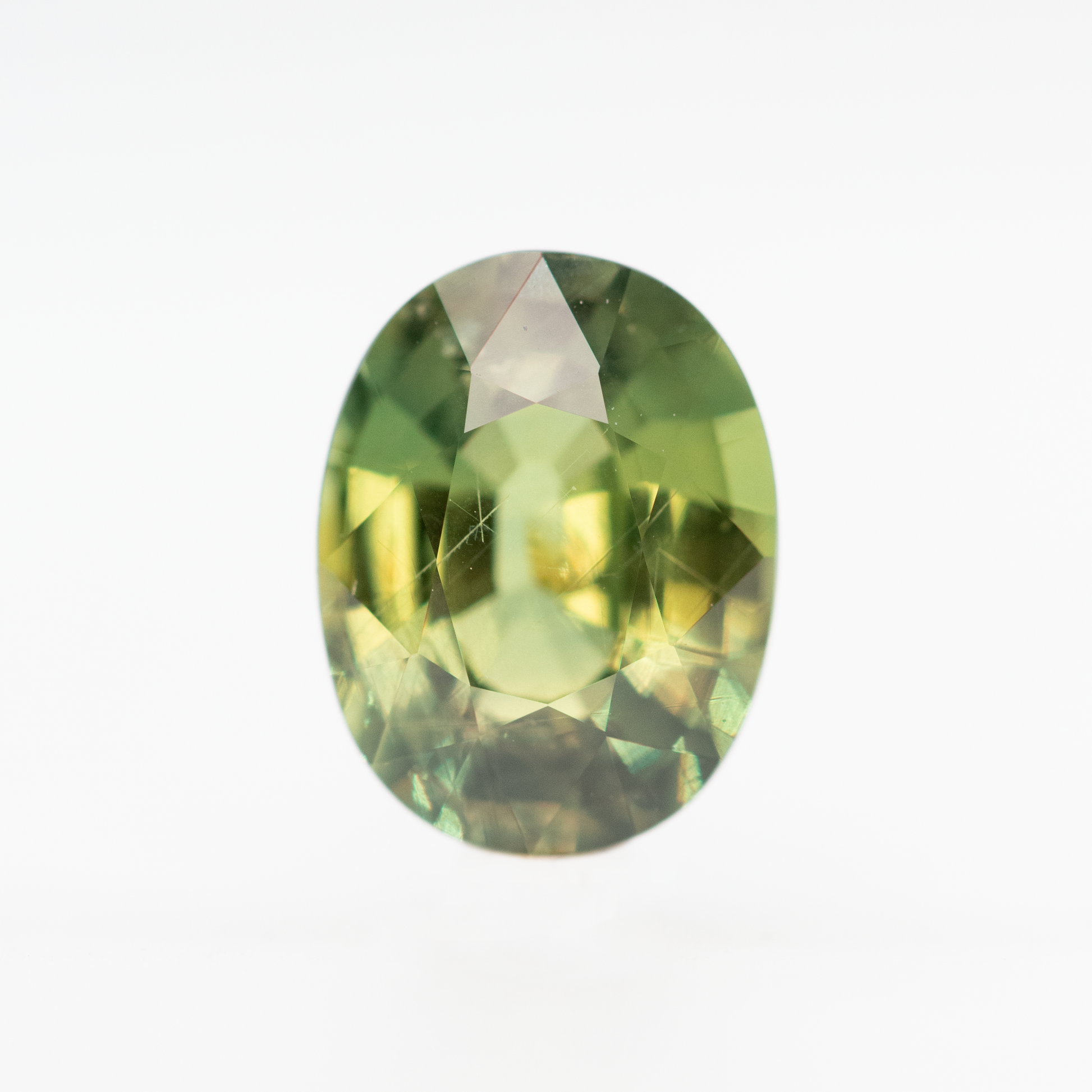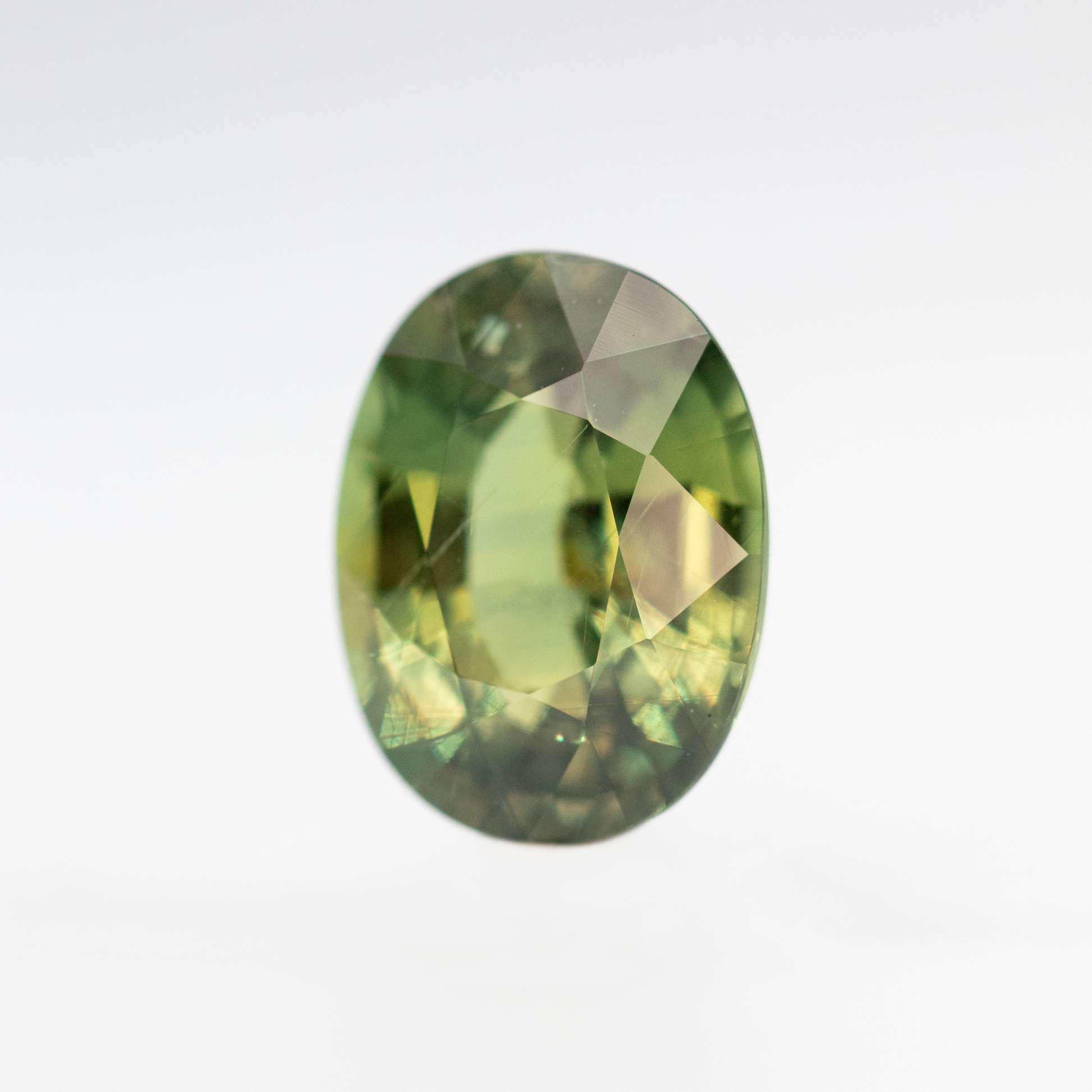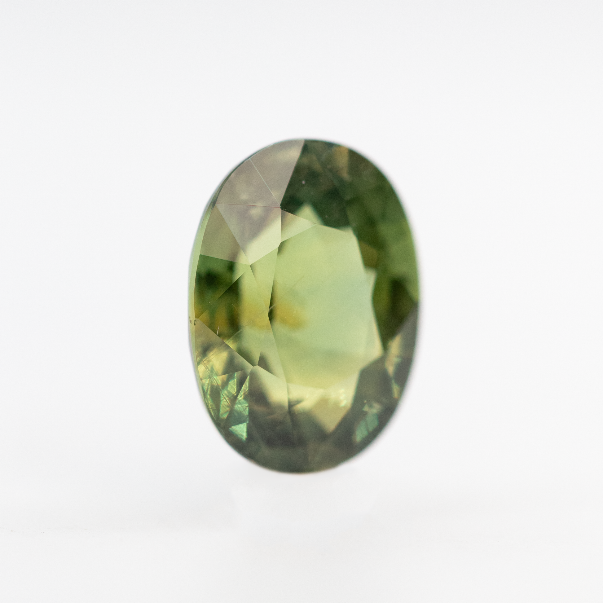 - Color and notes: Warm green stone with a golden glow and rich olive undertones. Some subtle silk inclusions can be seen throughout the stone.