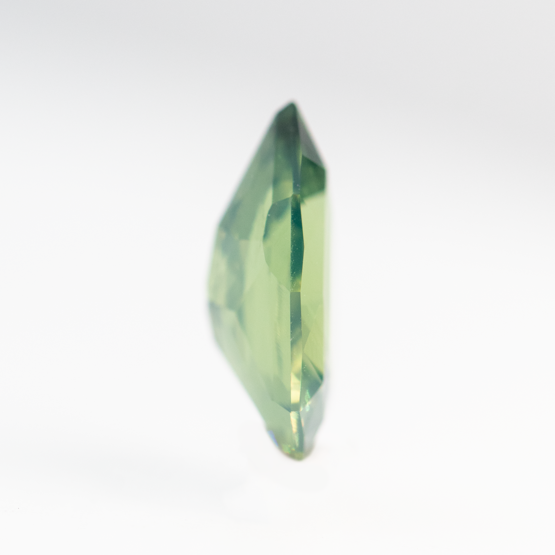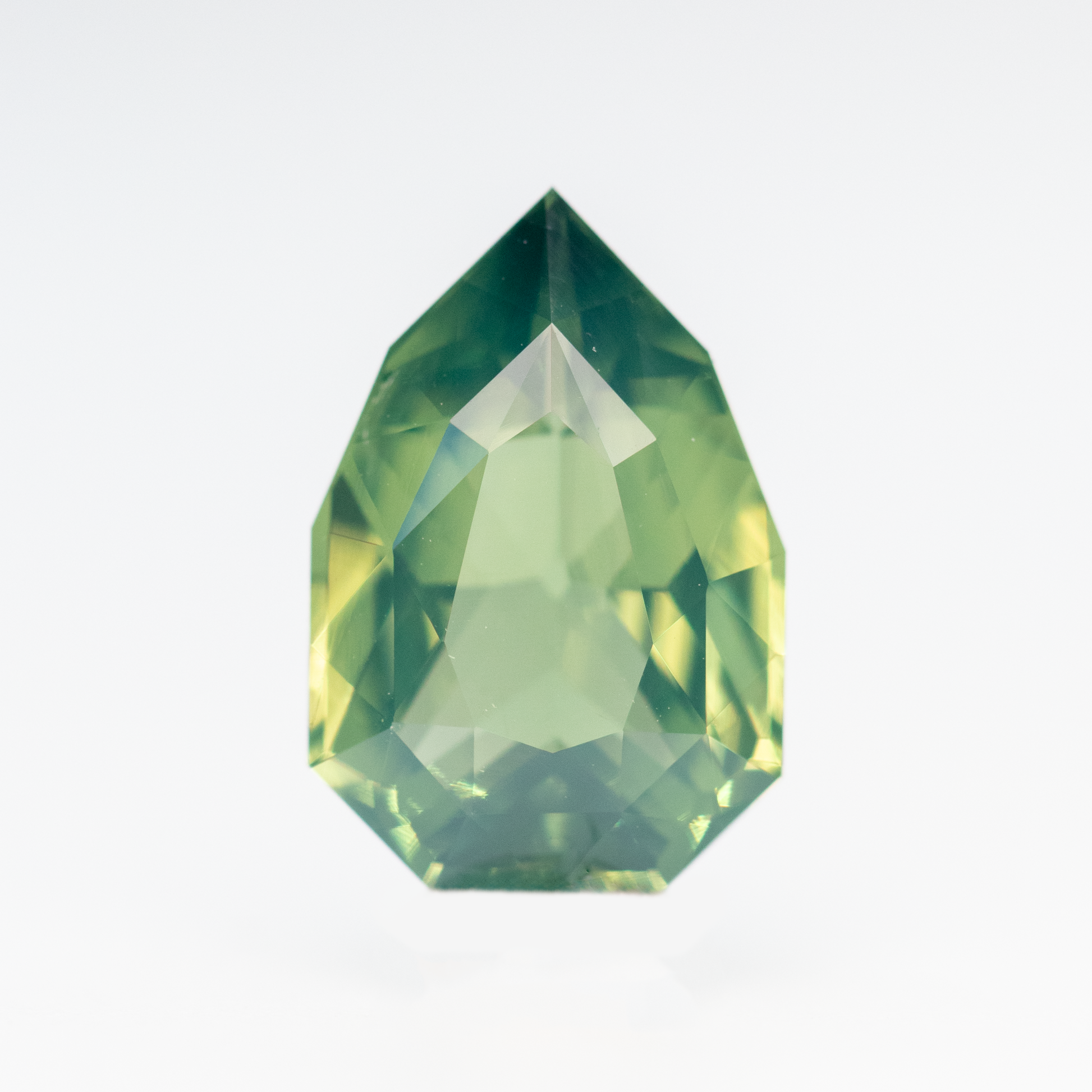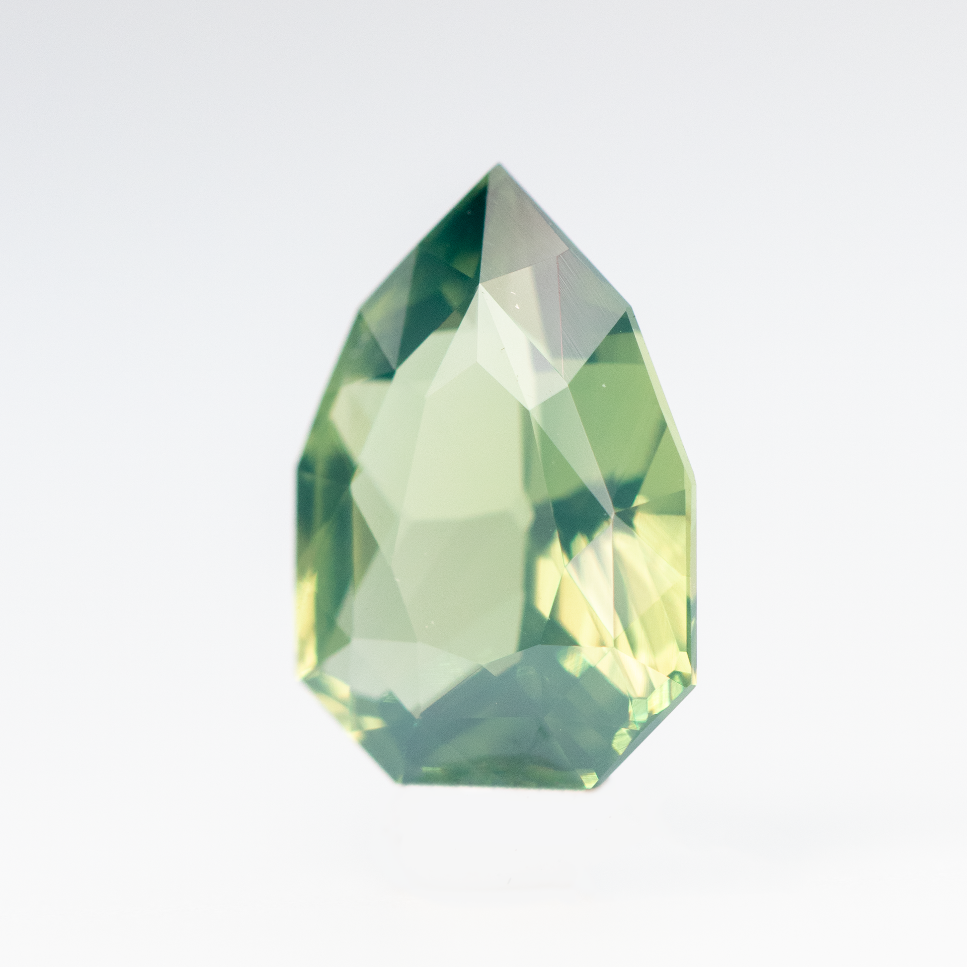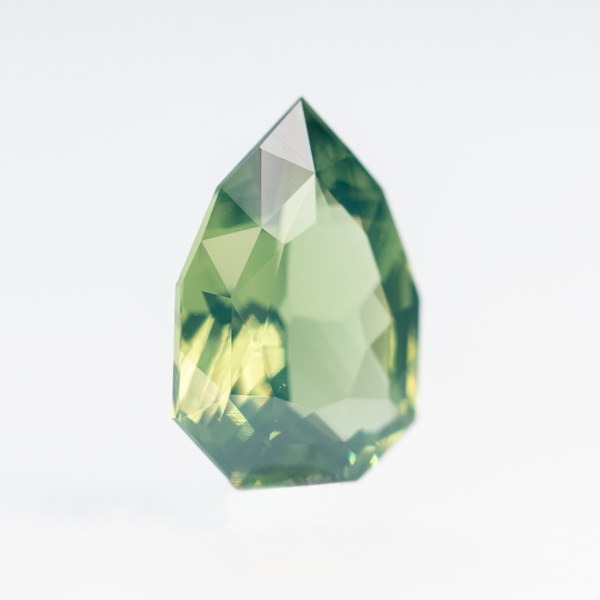 - Color and notes: Vibrant green stone with a bright yellow shimmer. Semi-transparent with nice clarity that highlights the unique cut of the stone.
