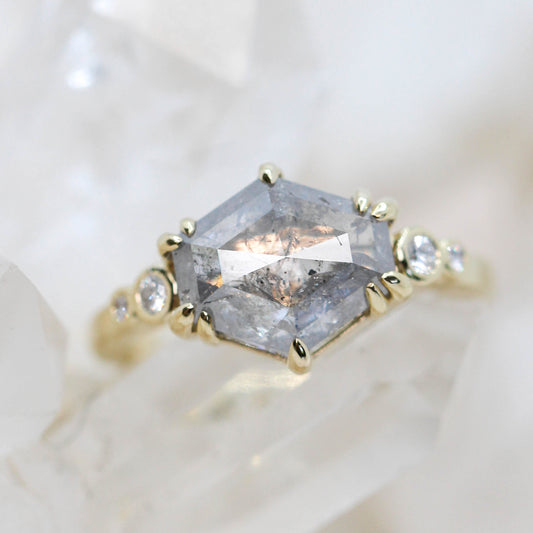 Project: Custom Joyce Ring with a 3.5 Carat Geometric Cut Salt and Pepper Gray Diamond and White Accent Diamonds in 14k