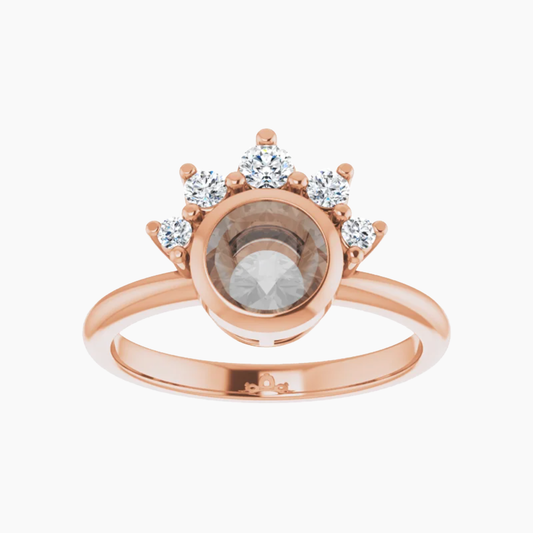Minnie Ring with a 1.02 Carat Round Certified Diamond and White Accent Diamonds in 10k Rose Gold - Ready to Size and Ship
