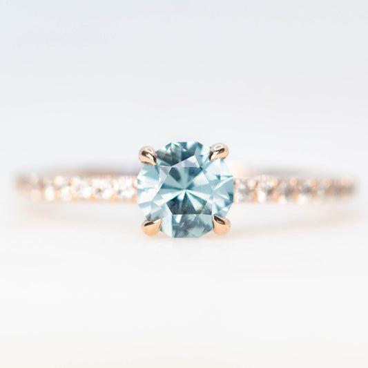 Gayle Ring with a 1.03 Carat Round Blue Montana Sapphire and White Accent Diamonds in 14k Rose Gold - Ready to Size and Ship