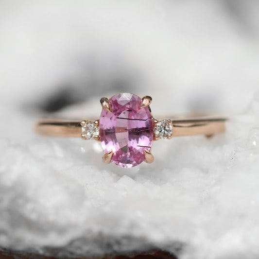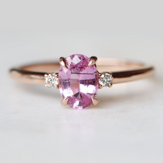 Terra Ring with a 1.05 Carat Pink Oval Sapphire and White Accent Diamonds in 14k Rose Gold - Ready to Size and Ship