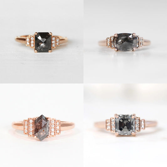 Ivy Ring with a 0.98 Carat Round Light Gray Salt and Pepper Diamond in 14k Rose Gold - Ready to Size and Ship