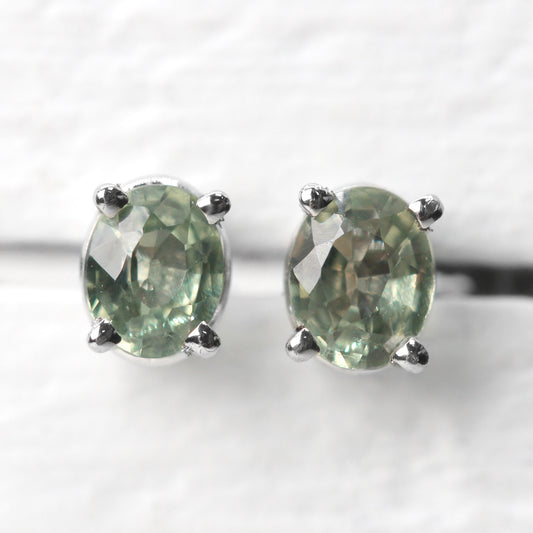 McKenzie Ring with a 2.18 Carat Green Oval Sapphire and White Accent Diamonds in 14k Yellow Gold - Ready to Size and Ship