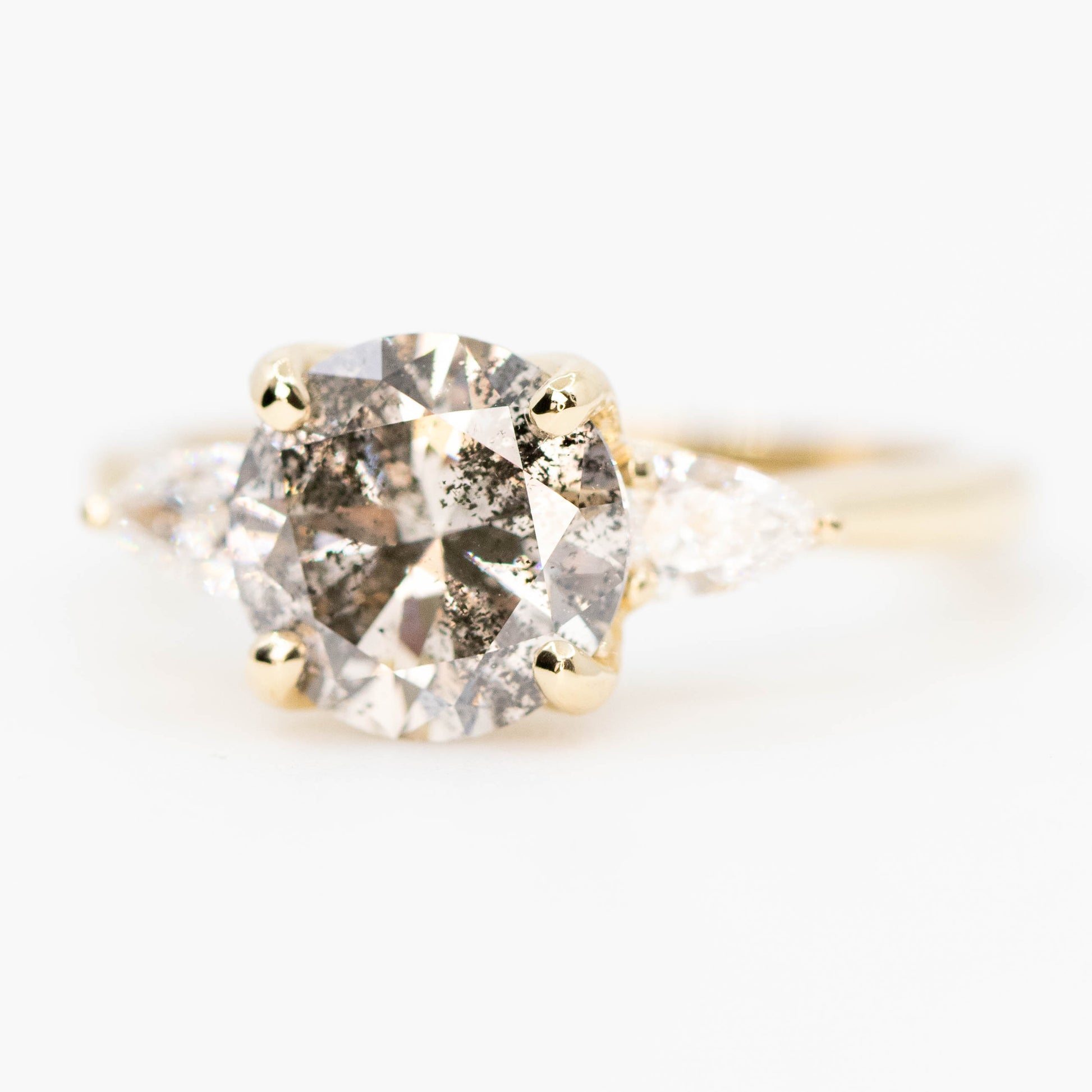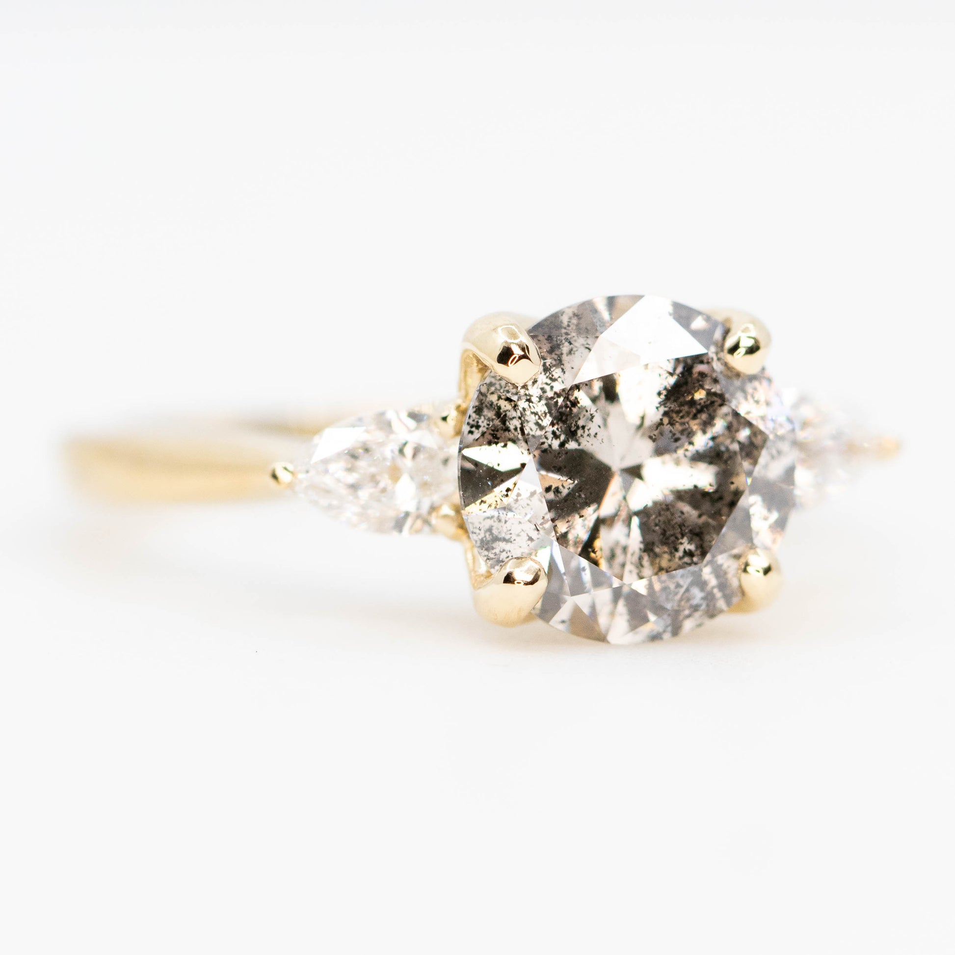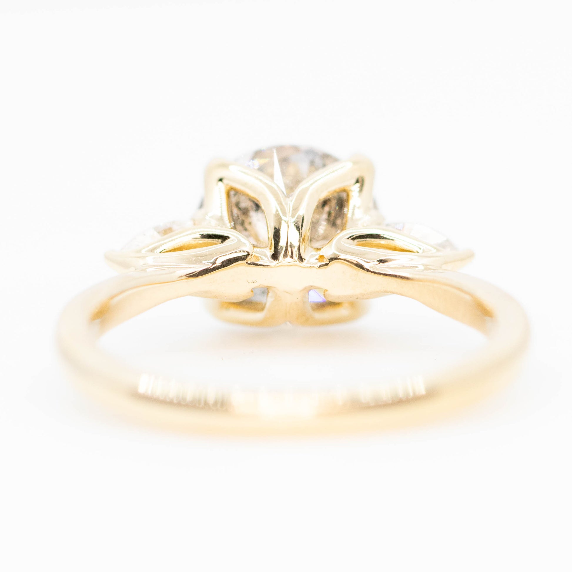 Oleander Ring with a 2.02 Carat Warm Gray Salt and Pepper Diamond and White Diamond Accents in 14k Yellow Gold - Ready to Size and Ship