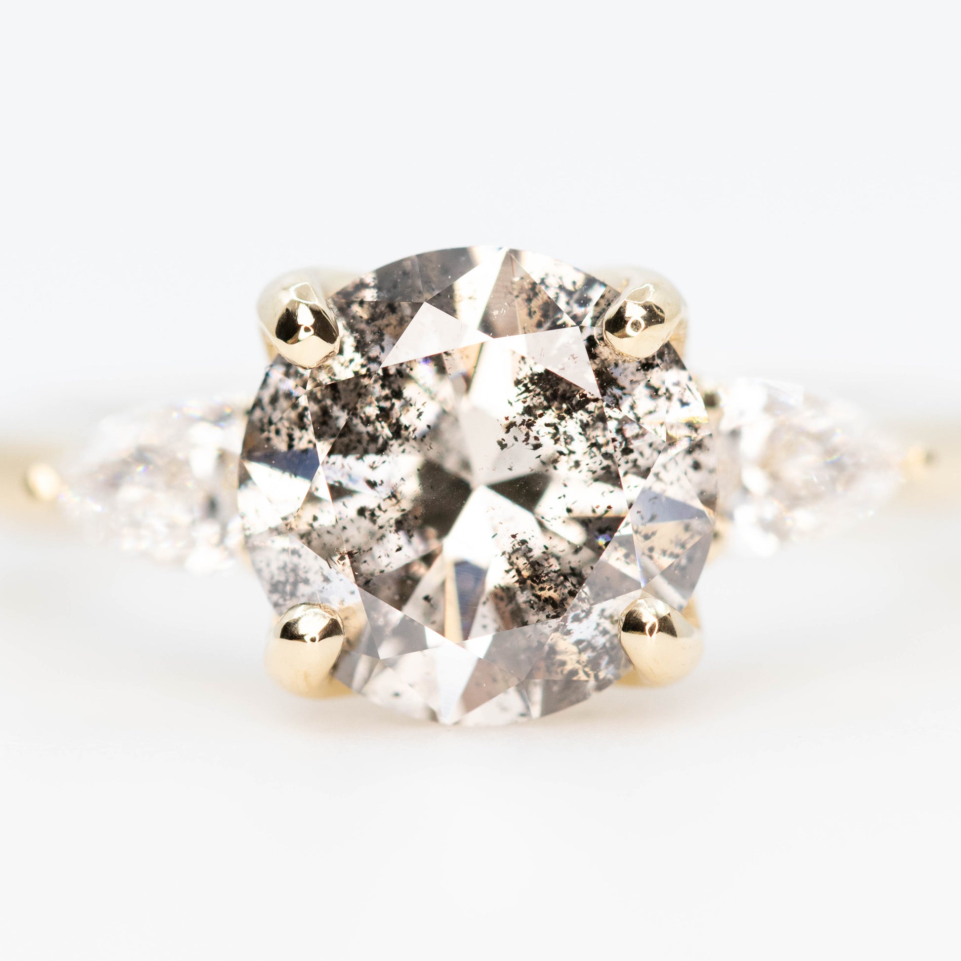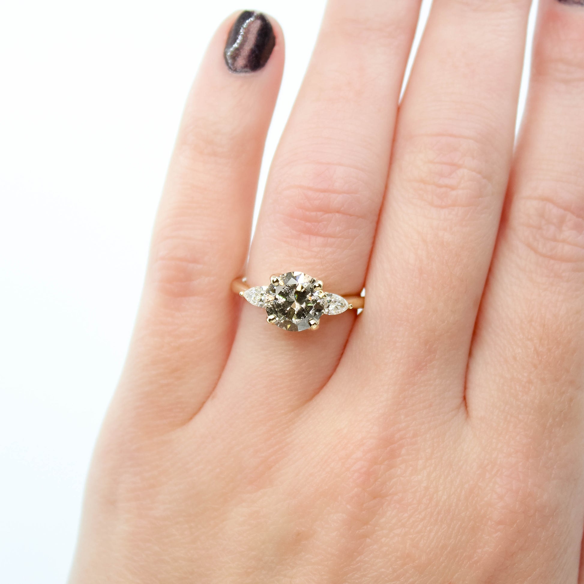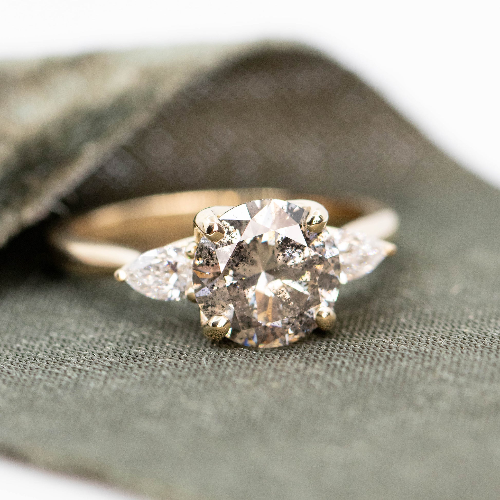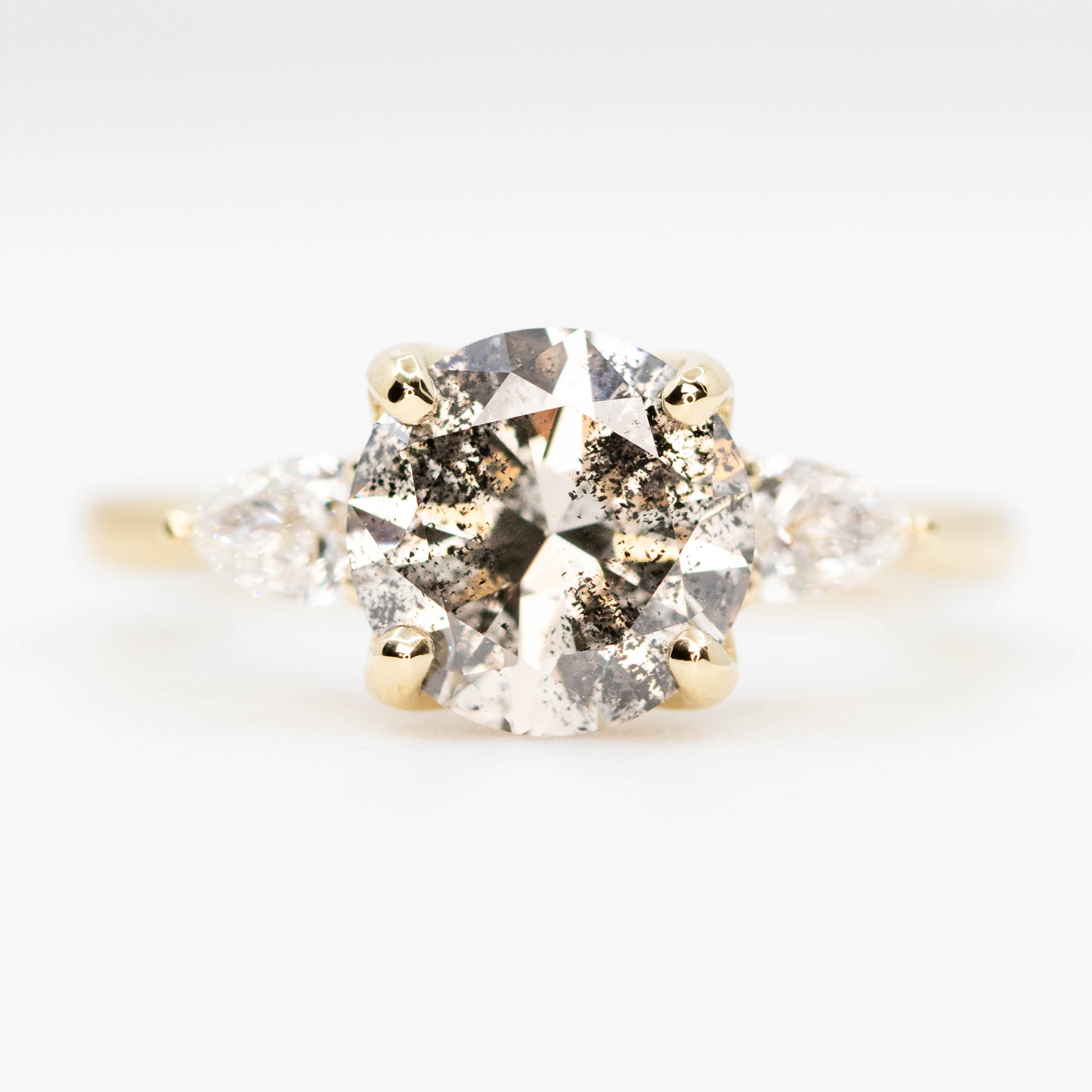 Oleander Ring with a 2.02 Carat Warm Gray Salt and Pepper Diamond and White Diamond Accents in 14k Yellow Gold - Ready to Size and Ship