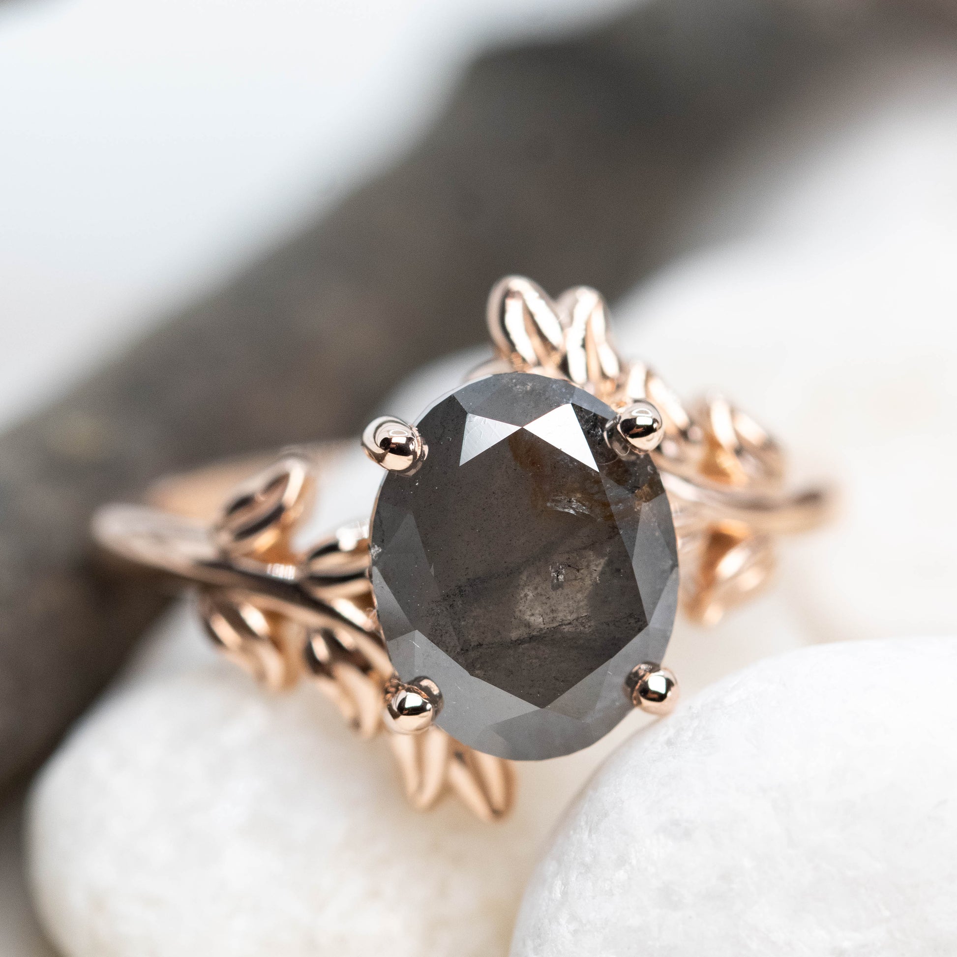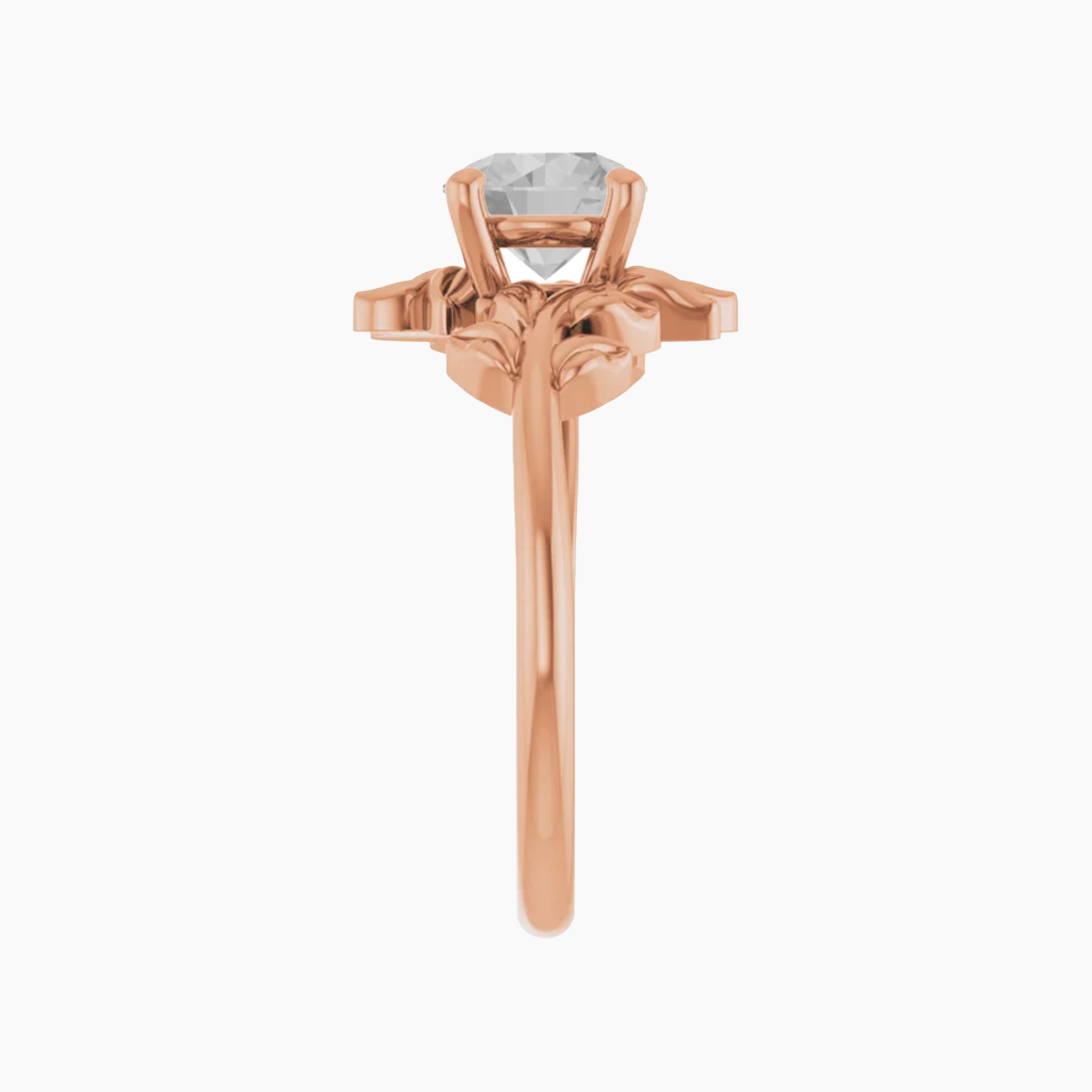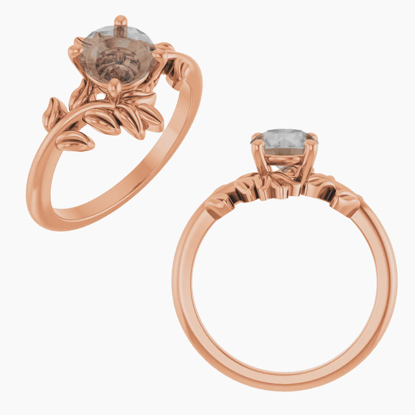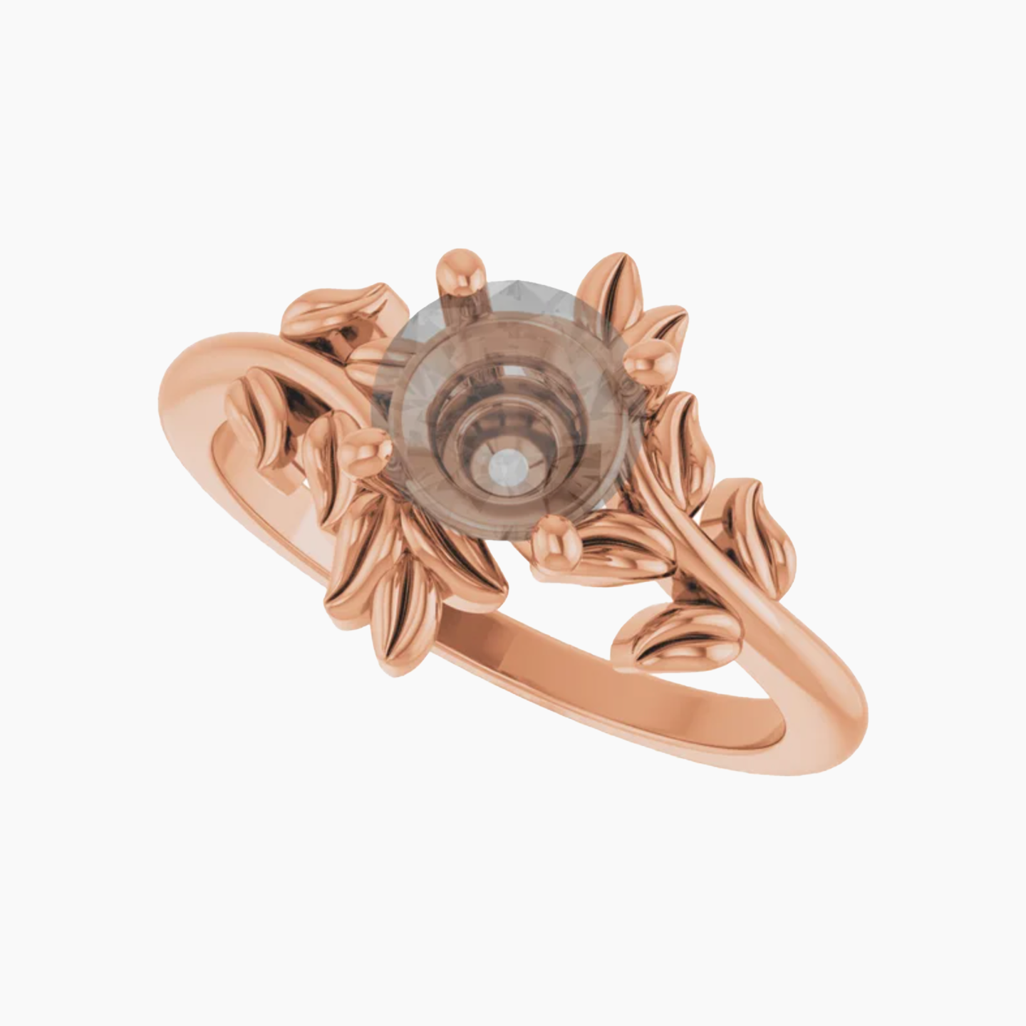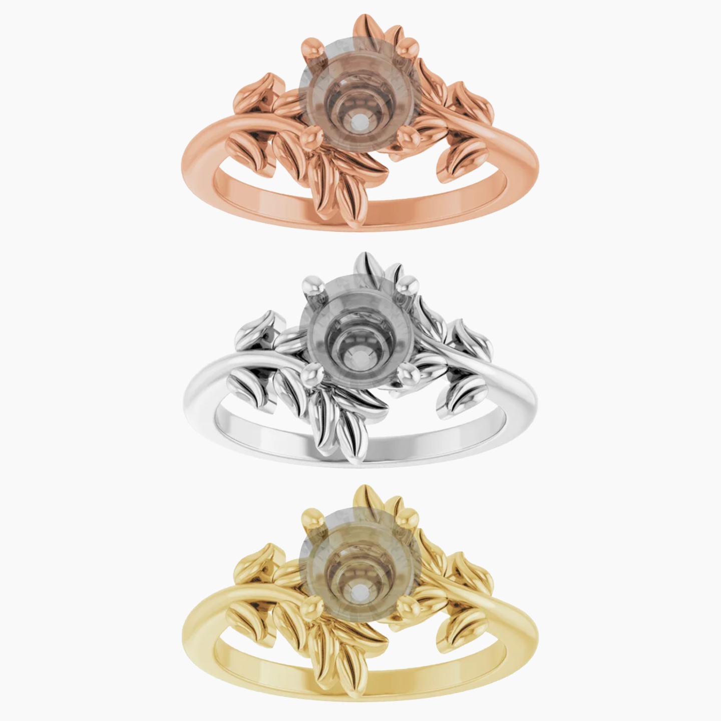 - This all metal setting has a whimsical leafy design that is perfect for the nature lovers. The metal leaves surround the center stone, and the two branches mirror one another asymmetrically.