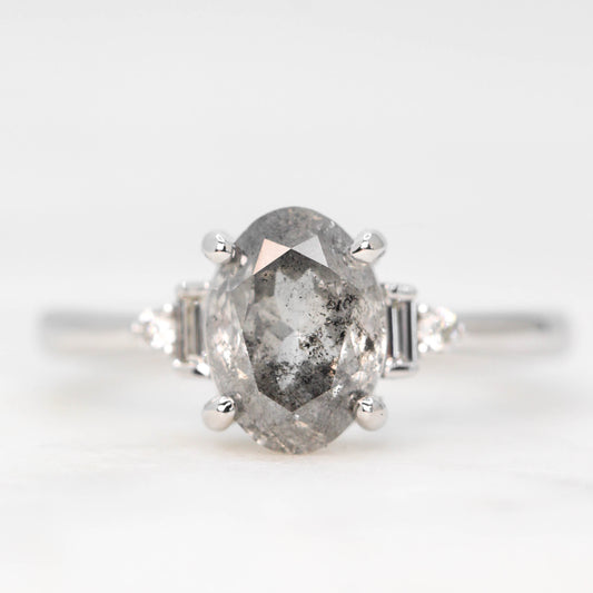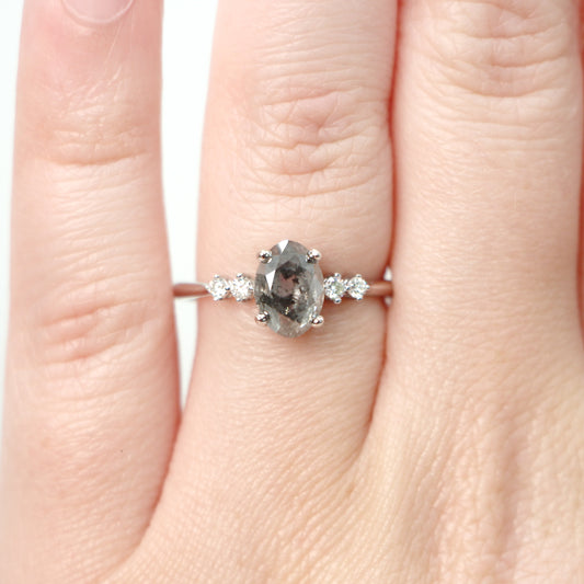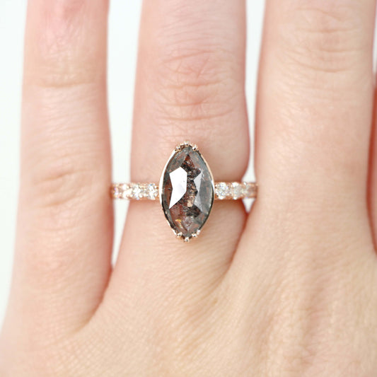 Odette Ring with a 1.05 Carat Pear Salt and Pepper Diamond and White Accent Diamonds in 14k Rose Gold - Ready to Size and Ship