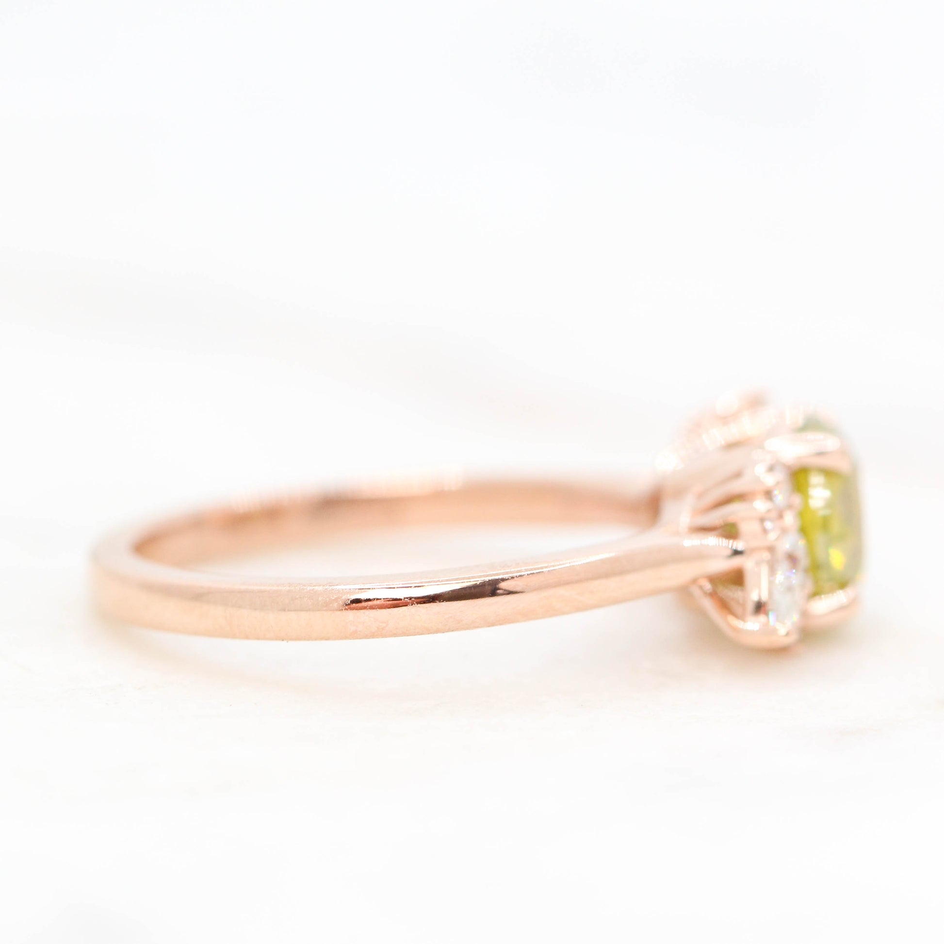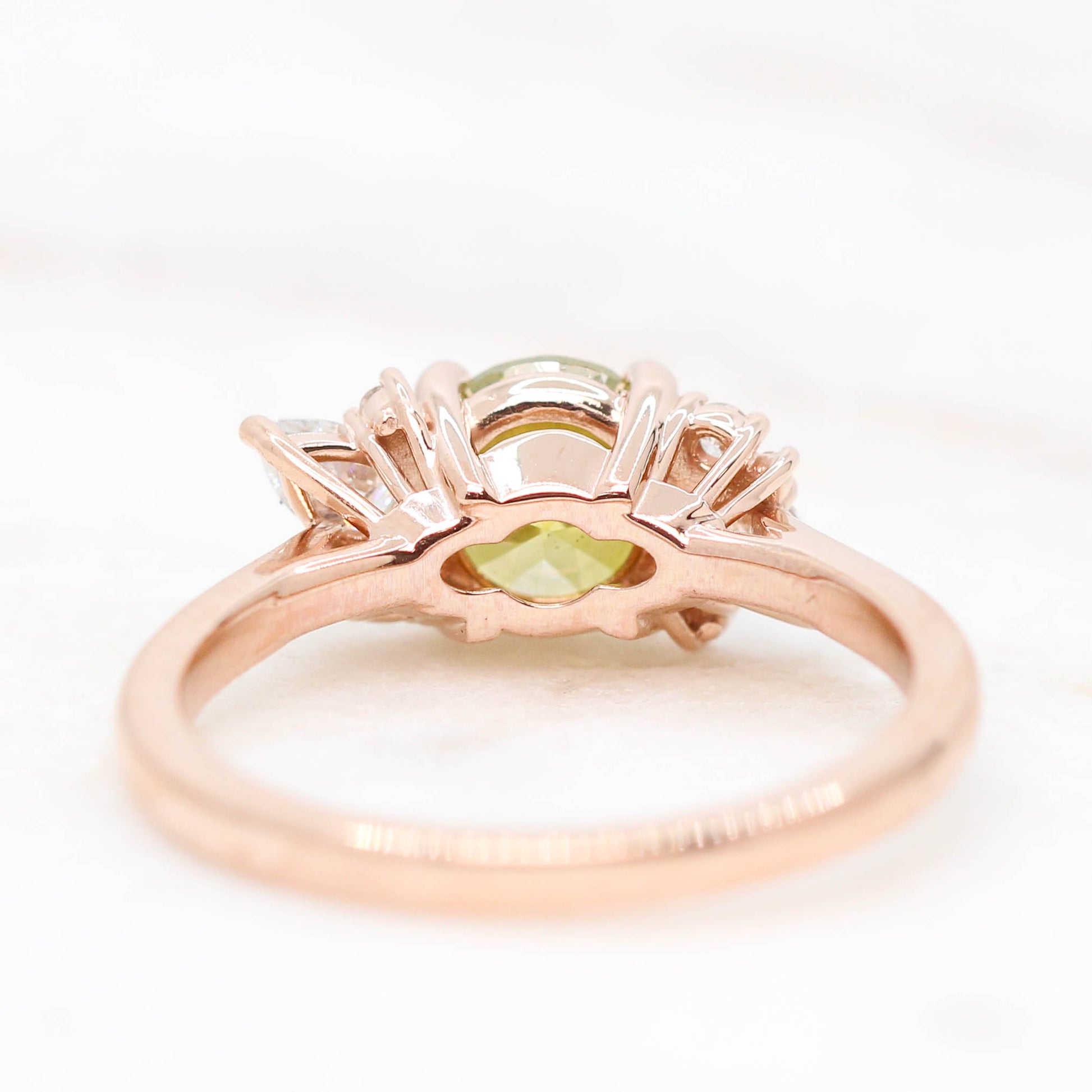 - Color and notes: A mix of green and yellow give this stone an almost neon quality. Mostly clear of inclusions except for a few small dark spots around the edges. Nice clarity with a bright sparkle.