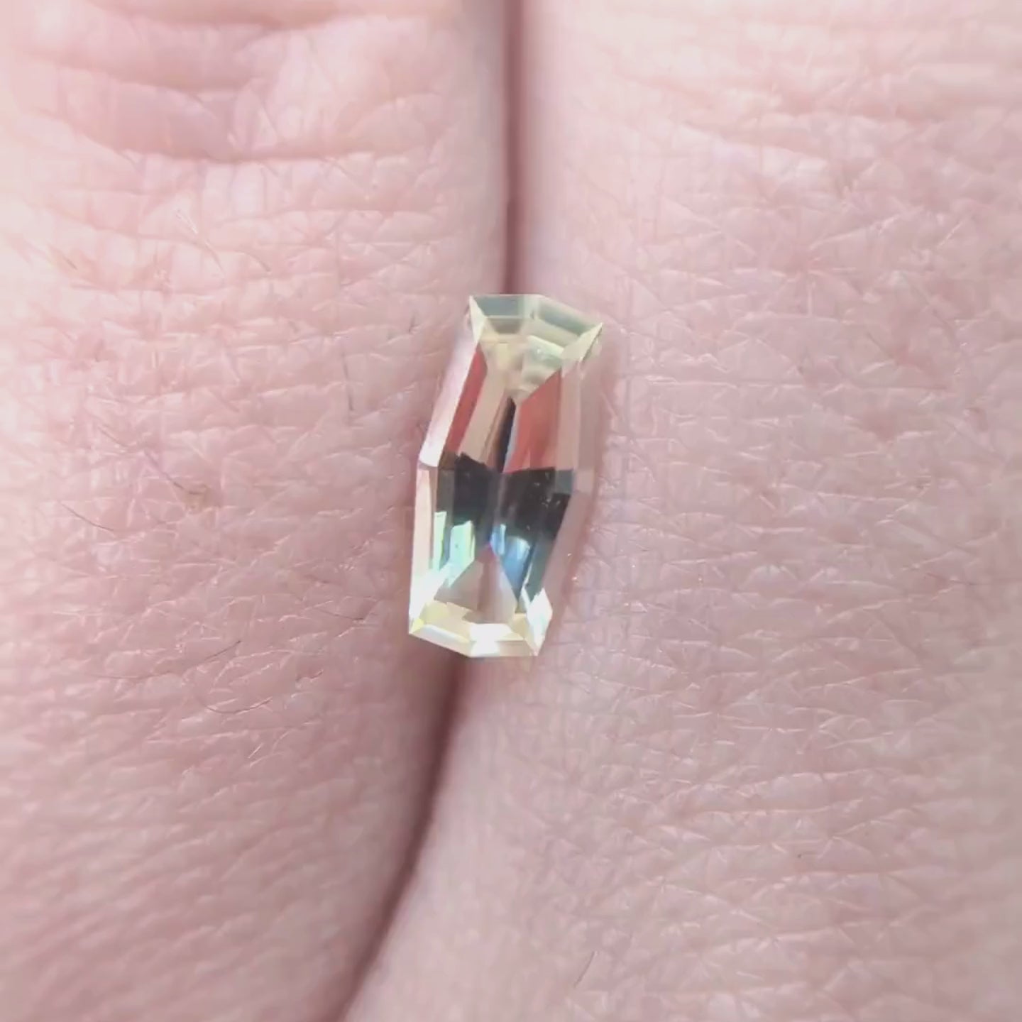 - Color and notes: Clear sapphire with crisp white highlights and strong yellow tones. Due to the transparency of the stone, it absorbs and reflects a lot of the colors around it. Very bright stone overall with a reflective shine.