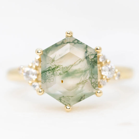 Orion Ring with a Hexagon Moss Agate and White Accent Diamonds - Made to Order