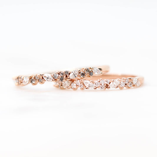 At Midwinter Co. Jewelry, we are a sustainable and tiny but trusted small business to create your unique and alternative bride type engagement rings. We are a leader in the salt and pepper diamond world, a quiet luxury brand that works one on one with you to design the most unique, gorgeous, modern jewelry. Midwinter Co. is also one of the only brands that specializes in acutely unique gemstones such as bi-color sapphires, teal green blue sapphires, mossy aquamarine, mossy agate, black tourmaline in quartz, gold in quartz, tourmaline in unique colors, gray sapphires, gray spinel, dark gray spinel, dark gray diamonds, black diamonds, black speckled diamonds, celestial diamonds, galaxy diamonds, dendritic agate, dendritic opal, dendritic quartz, branchy gemstones, quartz with black star hollandite, alexandrite, garnet, peridot with or without tourmaline, harmony quartz aka melody quartz aka seven stone quartz, morganite, emerald, topaz, misty white diamonds, white blue diamonds, opalescent diamonds, opalescent sapphires, parti sapphires, and more. Within our walls, we carry only a small select of stock as much of our work is custom. We custom design and personalize every ring setting/mounting to fit the unique gemstones and diamonds we carry. We can design you a custom ring set based off of a drawing or screen shots, aesthetics, themes, and more. We also have bridal necklaces, bridal earrings, mothers earrings, bridesmaids earrings, modern asymmetrical sapphire diamond earrings and more. Our small team is mighty and caring. Midwinter Co. is top rated with 5/5 100% 5 star on google. Drive 25-35 minutes from Philadelphia to visit our showroom to see our in stock pieces and stones. We can create: couples rings, rings for couples, rings for twins, twins rings, ring sets for couples, matching ring sets, custom stacking rings, custom stacking ring sets, bridal sets, custom right hand rings, custom mother gemstone rings, vintage style rings, modern style engagement rings, rings for the alt-bride, etc. We are LGBTQIA+ friendly, husband and wife owned. Our brand has been featured on E! News, Refinery 29, Vogue UK & magazines nation and internationally. We hope to be a small part of your story. Thank you for being a big part of ours!