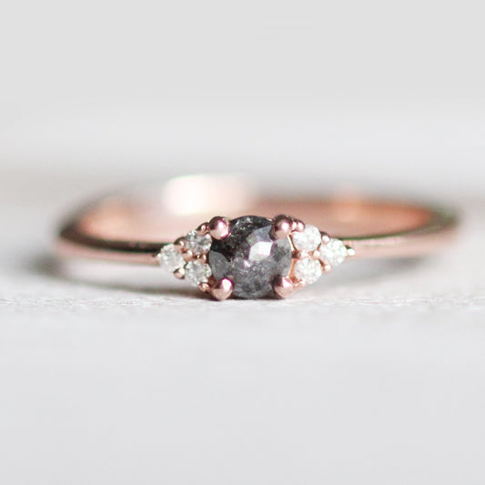 Lotus Ring with a 0.50 Carat Round Salt and Pepper Diamond - Made to Order