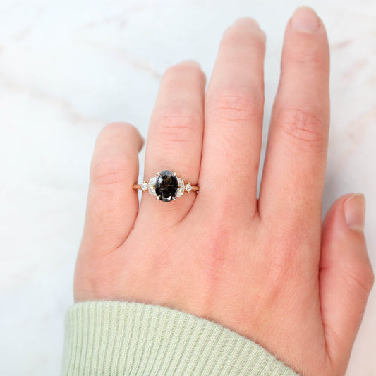 Sara Ring with a 3.21 Carat Charcoal Oval Diamond in 14k Rose Gold - Ready To Size and Ship - Midwinter Co. Alternative Bridal Rings and Modern Fine Jewelry