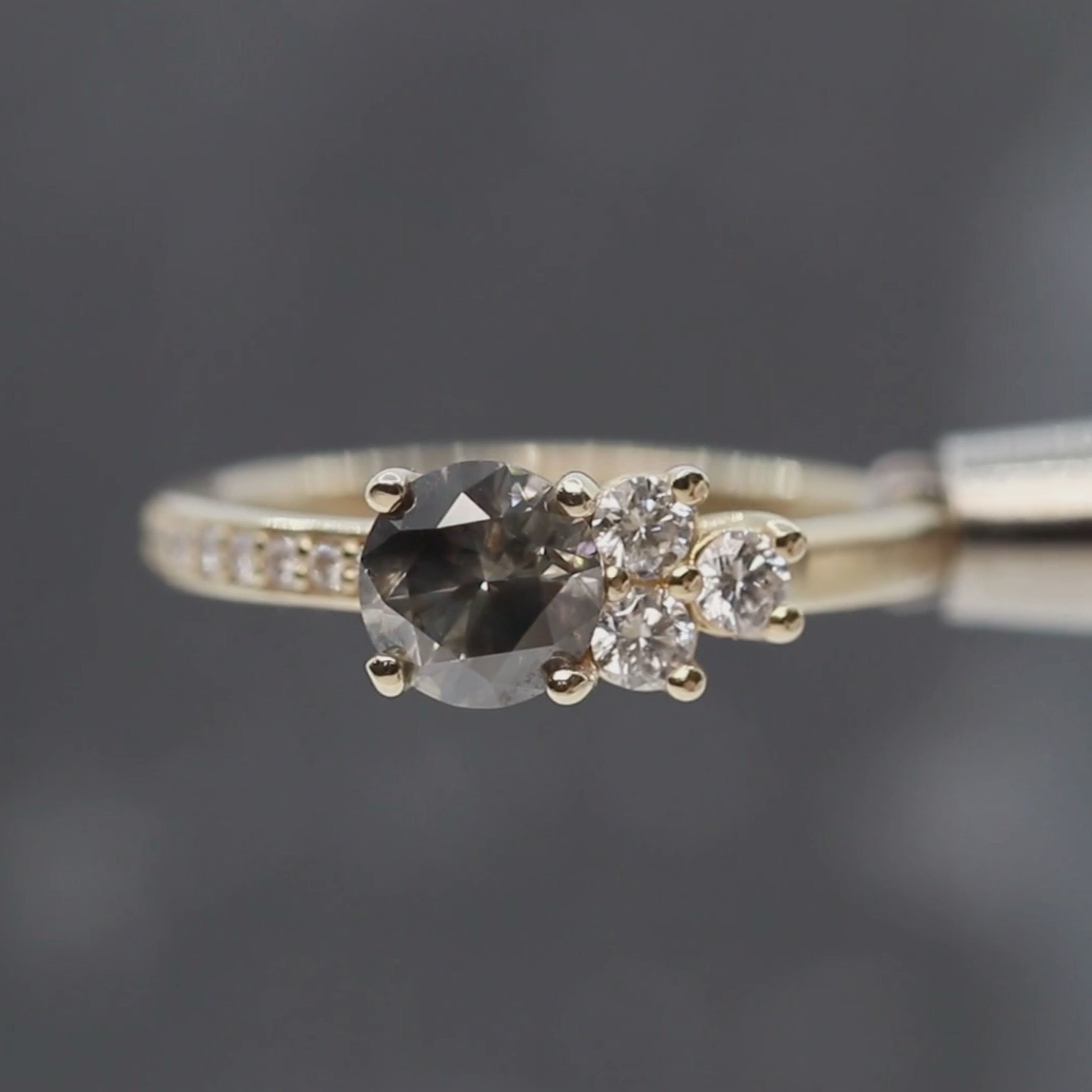 These diamonds are called "Salt and Pepper" by the industry. We began using these diamonds before they had an industry name, and have always called them Celestial diamonds.