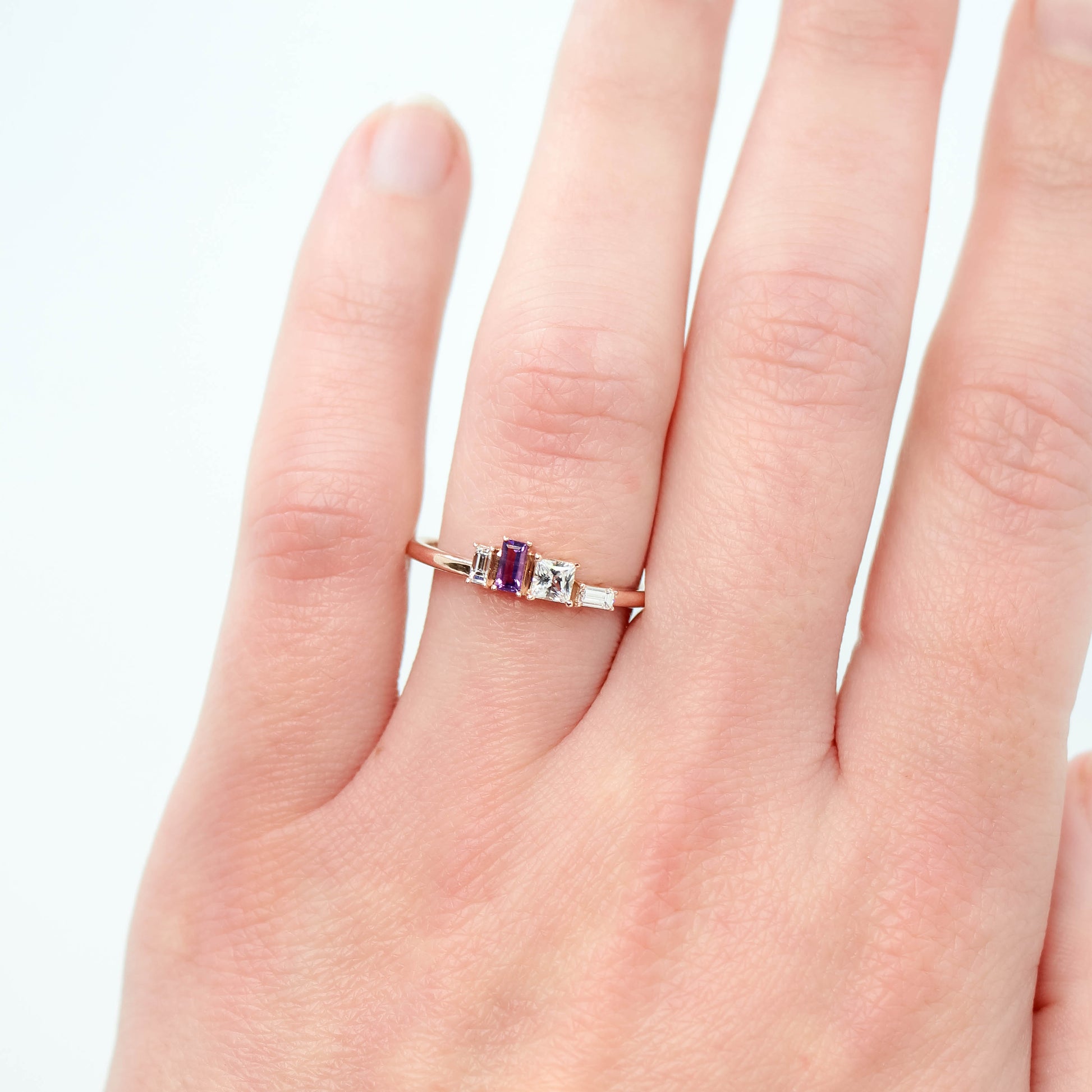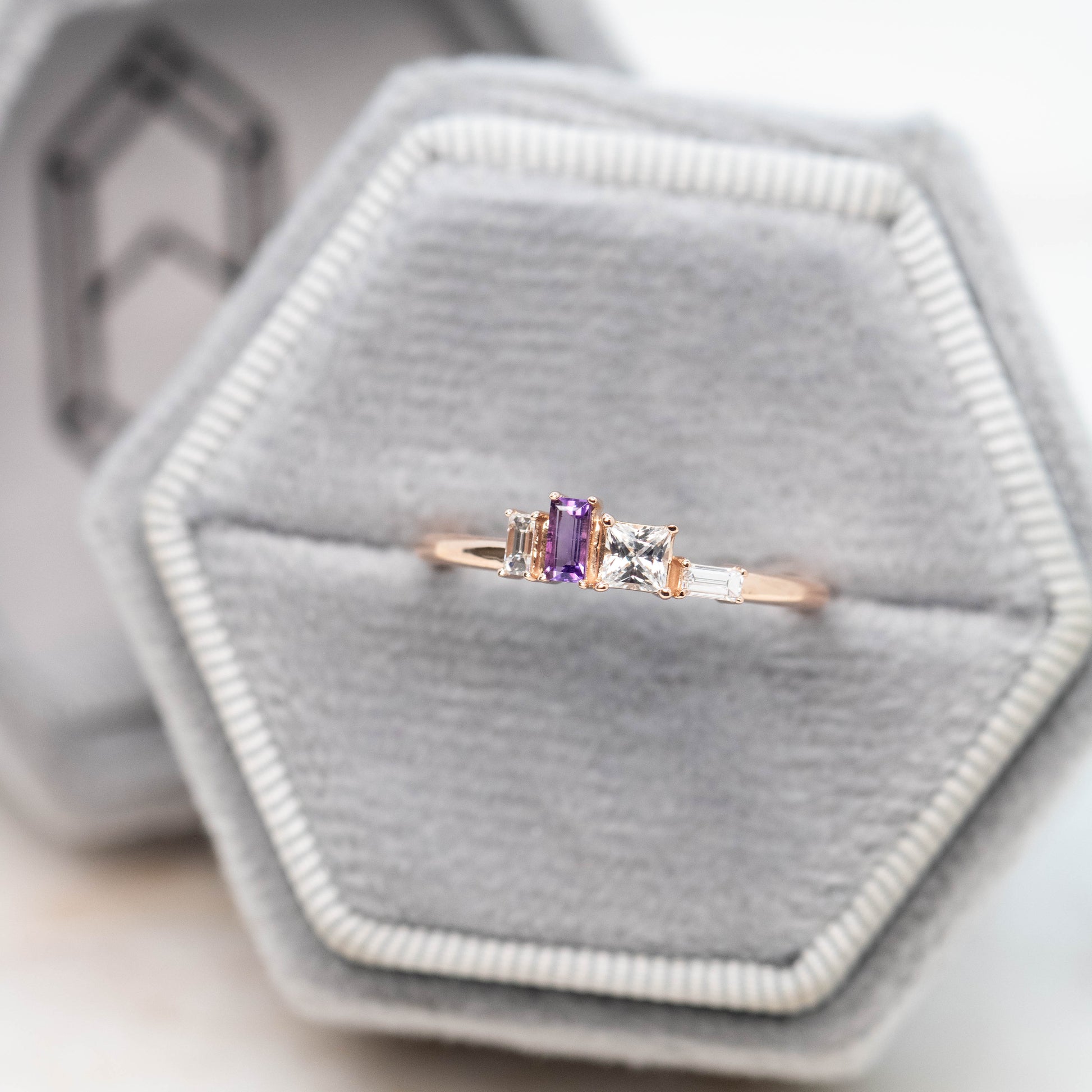 Brooklyn Ring with Diamond and Amethyst Accents in 14k Rose Gold - Ready to Size and Ship