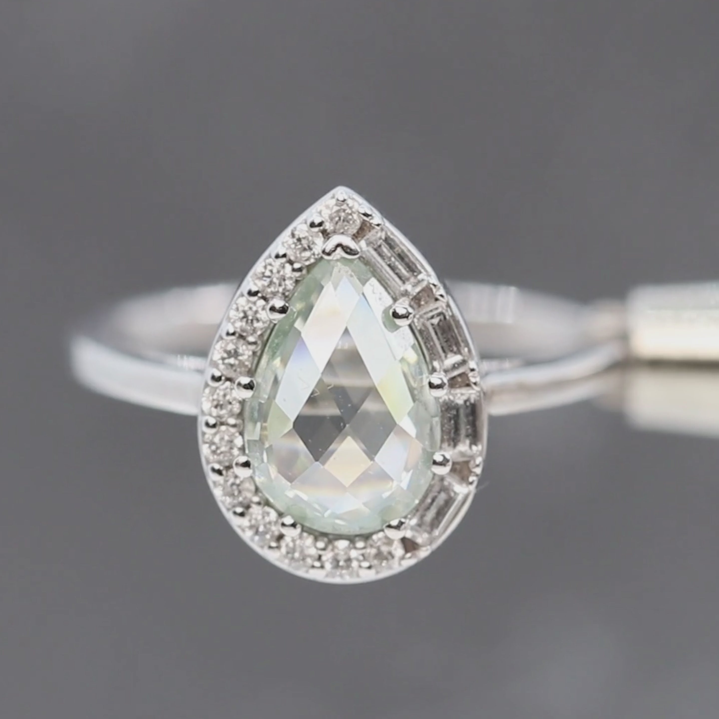 Moissanite is a lab grown stone that is too rare to be found on earth. It was discovered in a meteor, tested, and studied. After learning the chemical composition, moissanite is now a commercially available and very desirable stone that is stronger than all colored gemstones, and closest to the hardness of a diamond at 9.5/10 on the Mohs Hardness Scale. Moissanite has a higher refraction index than a diamond, making it brilliant to the eye. Our lab grown moissanite is eye-clean unless stated otherwise, meaning it's "perfect" on the inside!