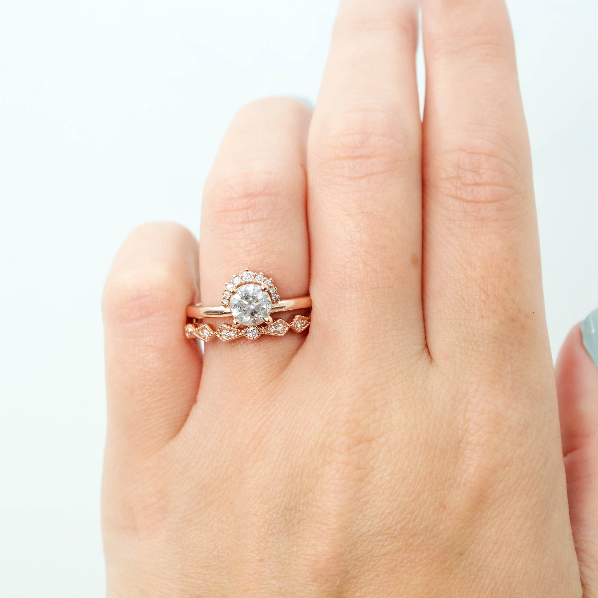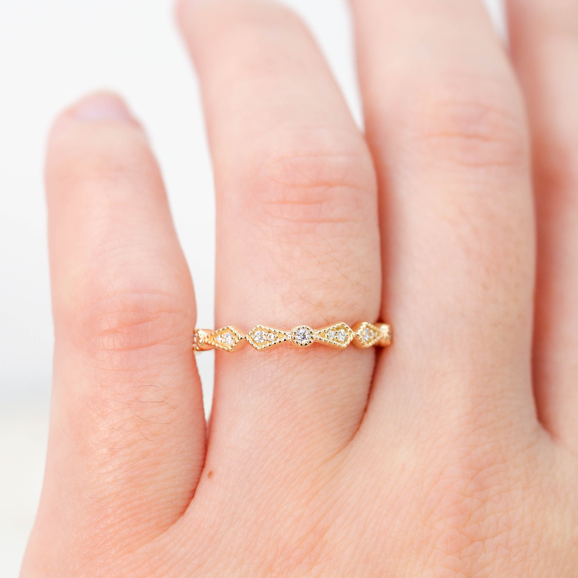 • This band is paired with a Charlotte ring and a Lonnie ring in the photos.