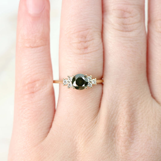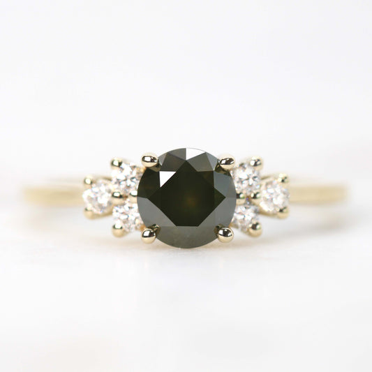 Verbena Ring with a 1.09 Carat Round Dark Salt and Pepper Diamond in 14k Yellow Gold - Ready to Size and Ship