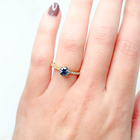 Emma Ring with a 1.63 Carat Round Iolite in 14k Rose Gold - Ready to Size and Ship