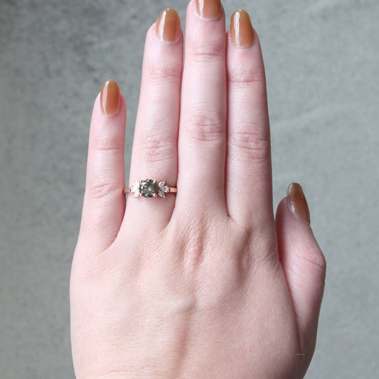 Aster Ring with a 4.84 Carat Dark Salt and Pepper Diamond and White Accent Diamonds in 14k Rose Gold - Ready to Size and Ship