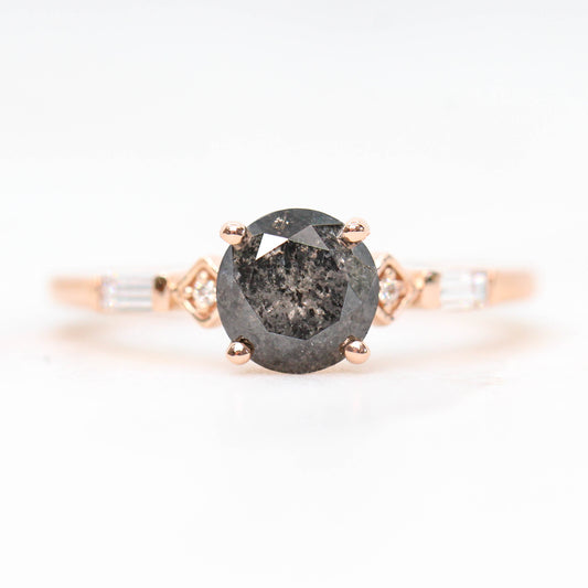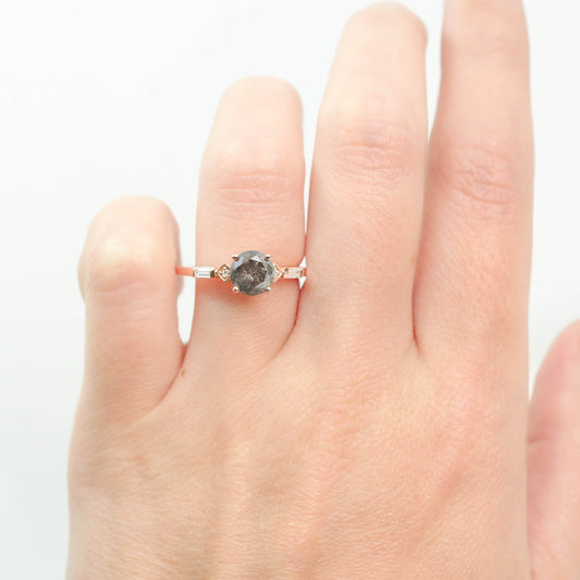Francine Ring with a 1.34 Carat Round Gray Salt and Pepper Diamond and Black and White Accent Diamonds in 14k Rose Gold - Ready to Size and Ship