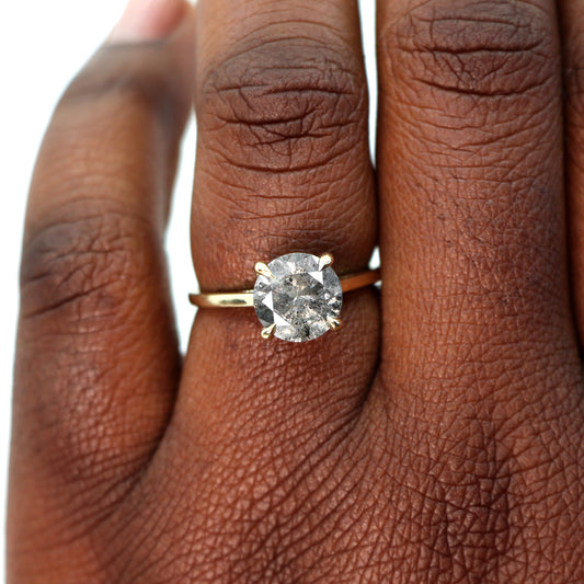 Andia Ring with a 1.10 Carat Round Gray Salt and Pepper Diamond and White Accent Diamonds in 14k Yellow Gold - Ready to Size and Ship