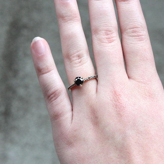 Juliette Ring with a 0.96 Carat Round Gray Salt and Pepper Diamond in 10k Rose Gold - Ready to Size and Ship