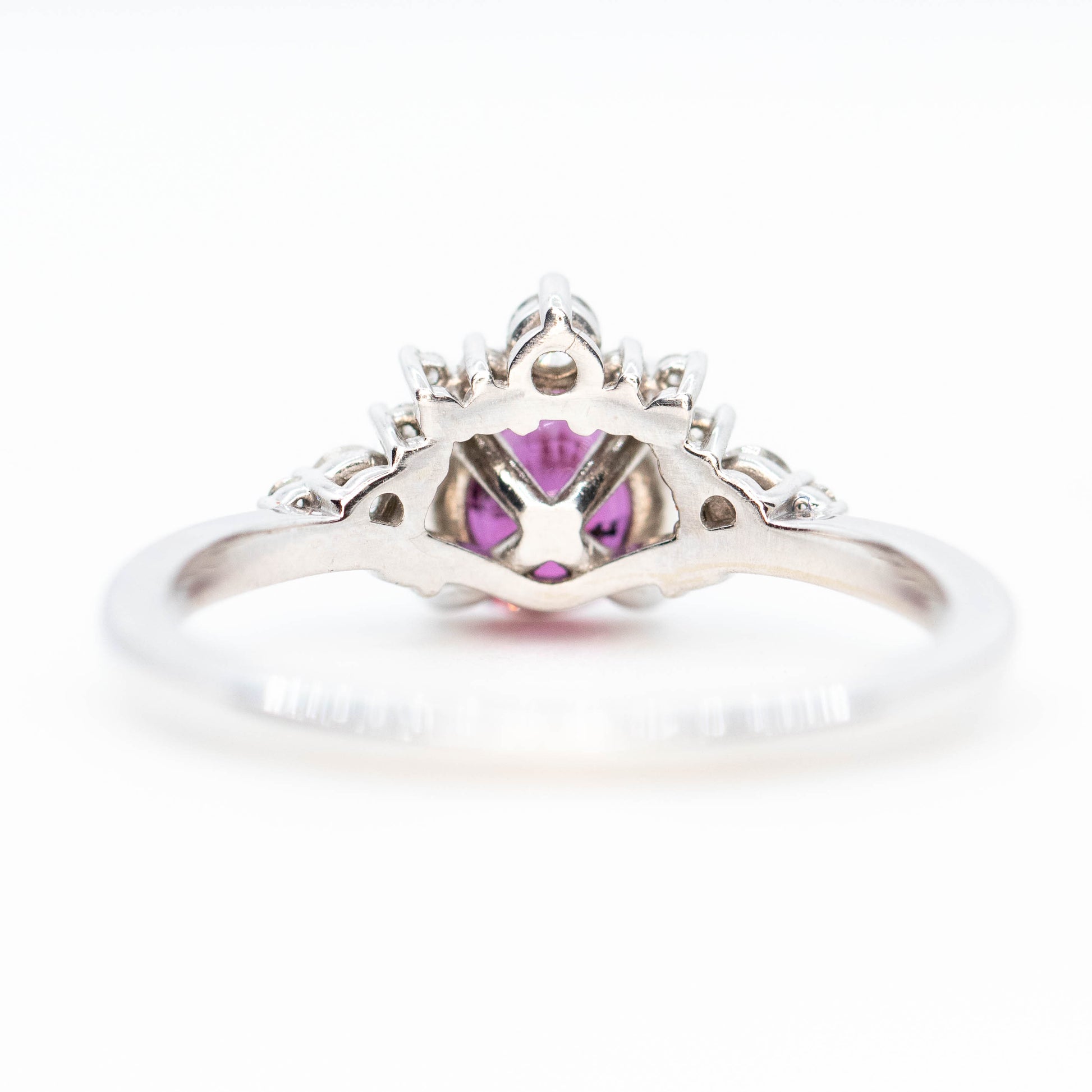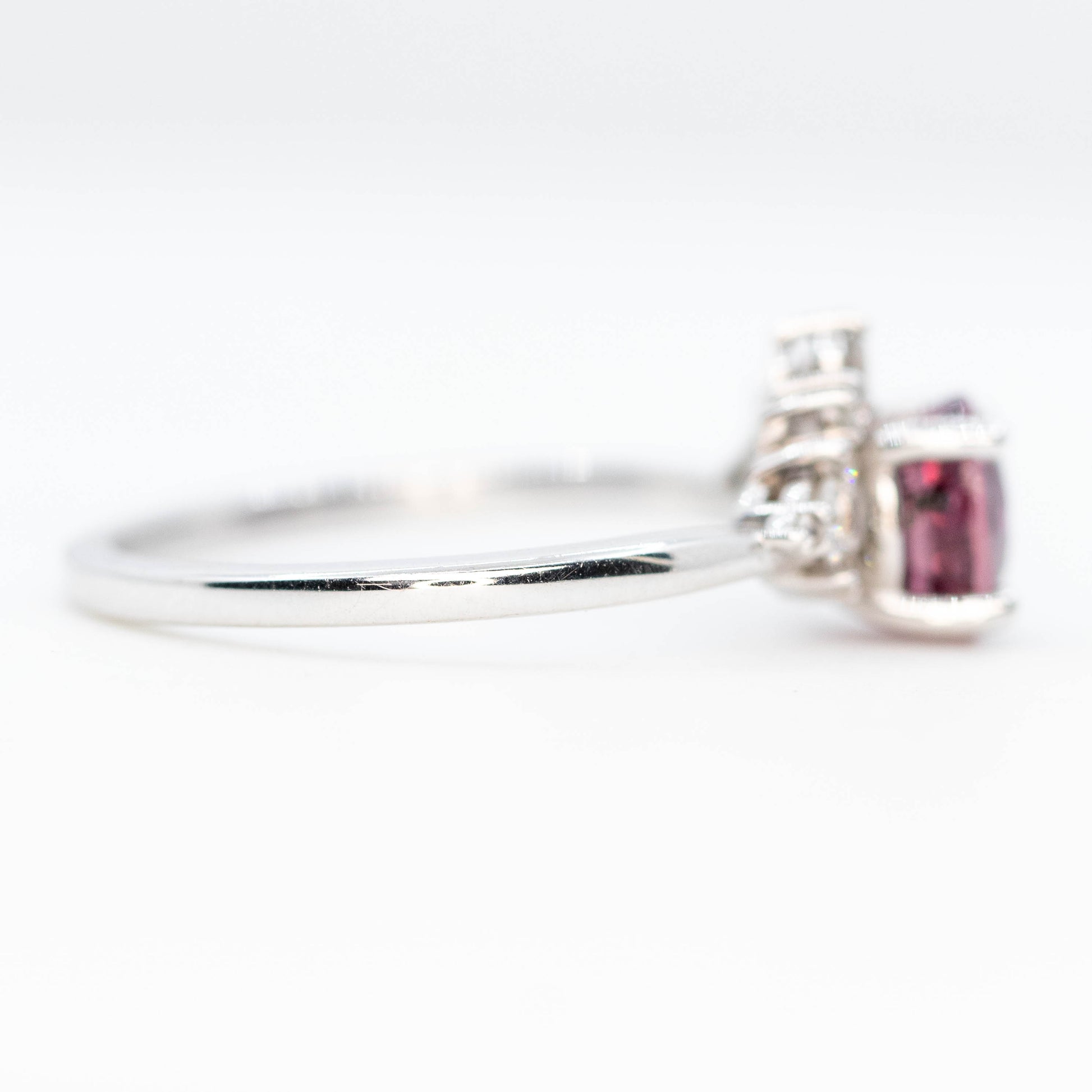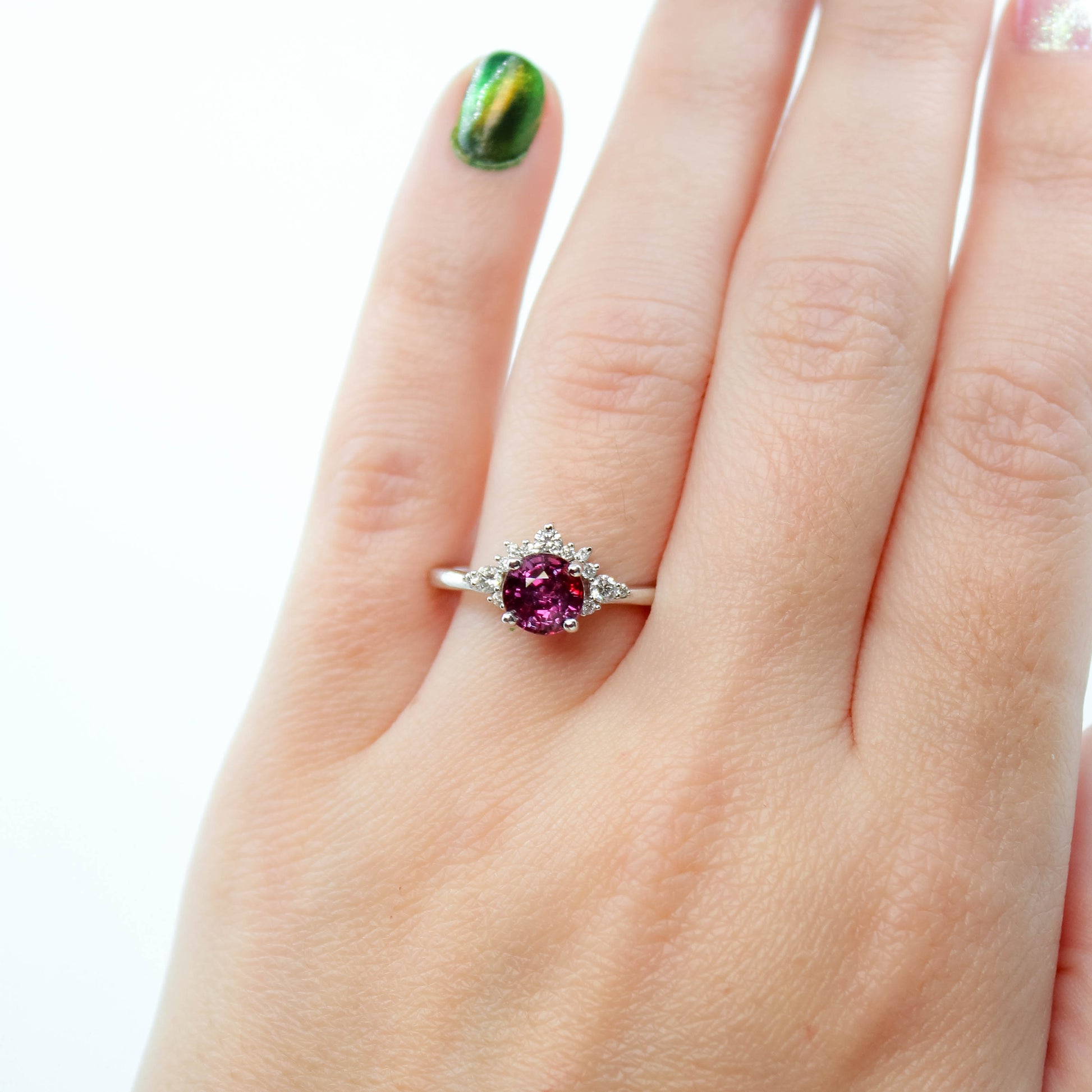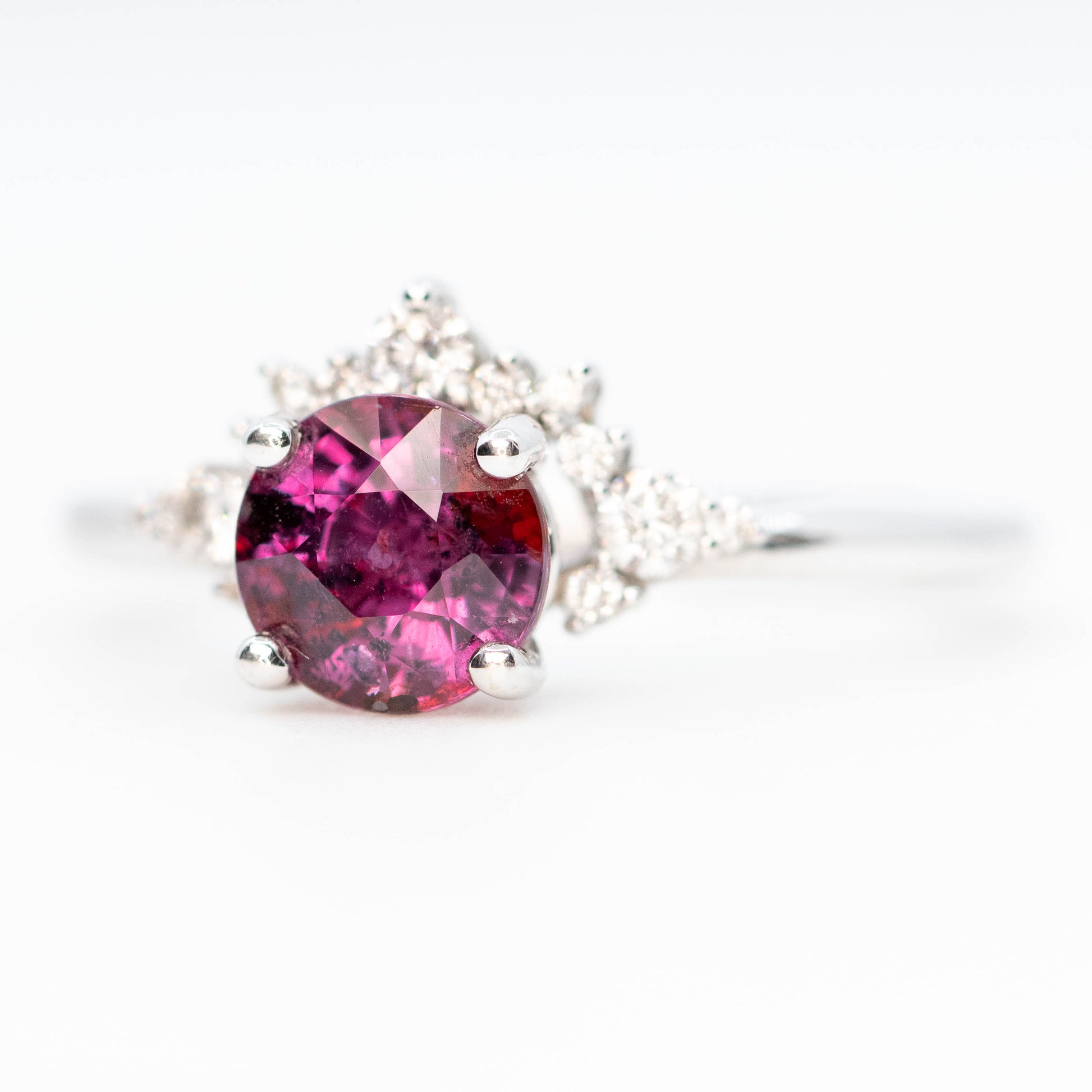 Athena Ring with a 1.72 Carat Round Berry Sapphire and White Accent Diamonds in 14k White Gold - Ready to Size and Ship