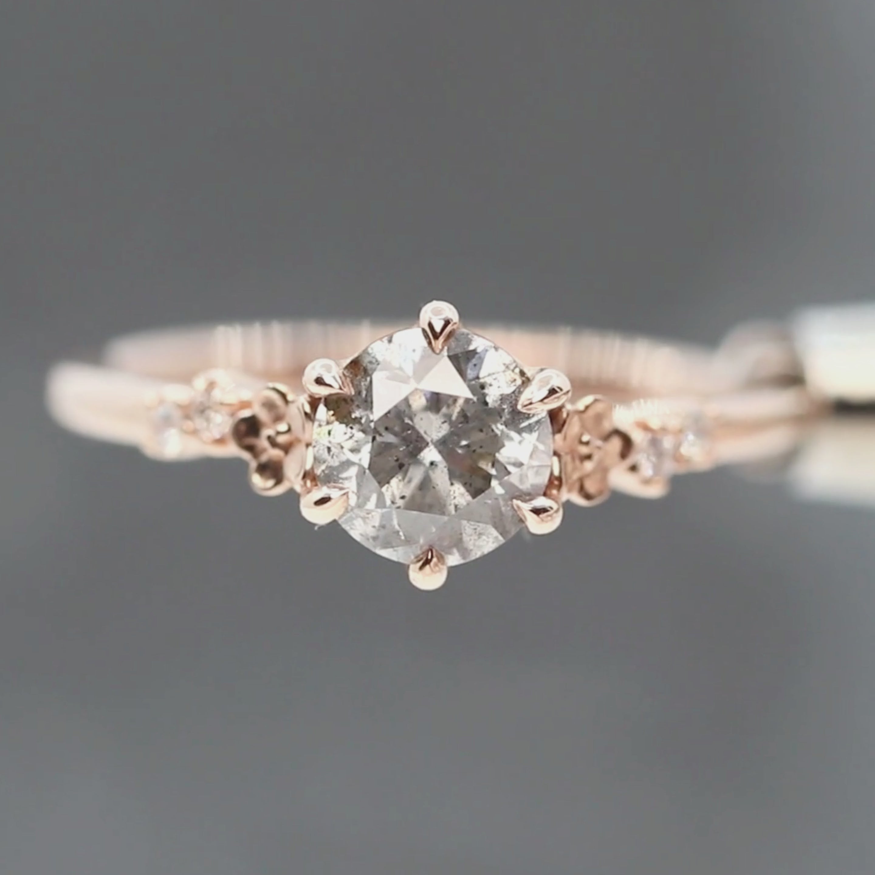Meadow Ring with a 1.12 Carat Round Gray Salt and Pepper Diamond with White Accent Diamonds in 14k Rose Gold - Ready to Size and Ship