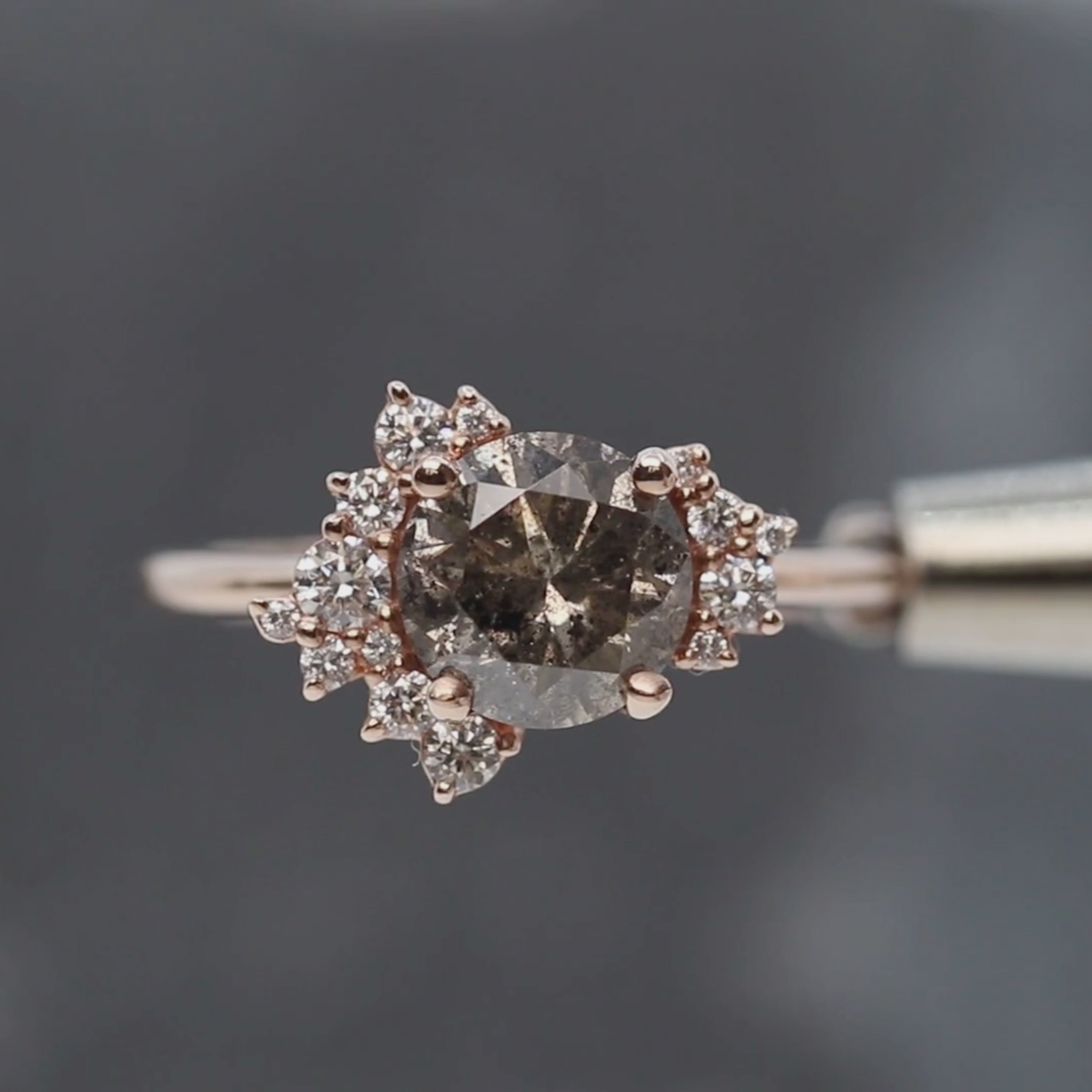 We often work with amazing and stunning natural diamonds that we call Celestial diamonds, which the industry sometimes calls salt and pepper diamonds, or galaxy diamonds. We worked with these diamonds before they were somewhat normal on the scene. Everything about the diamond is a real diamond, and possibly even more real than your "standard" diamond that may have been heat treated or had its inclusions microscopically removed/filled. The perfectly imperfect stones are each unique, and since they are not your standard mass-purchased stone in our industry, it isn't worth the effort for "bad guys" to make fakes that look like these.