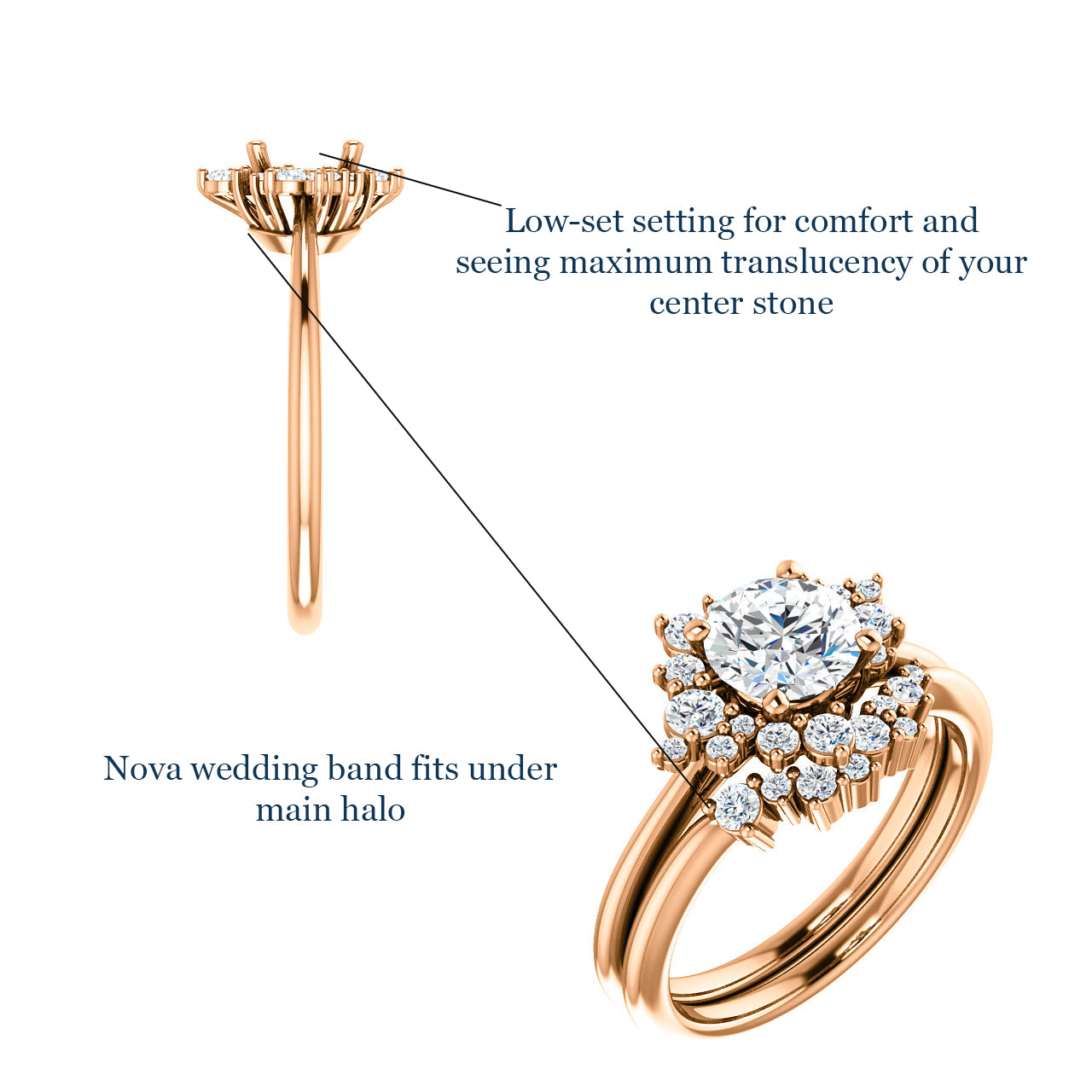 • This setting pairs best with a contour band and has a matching band available (pictured).