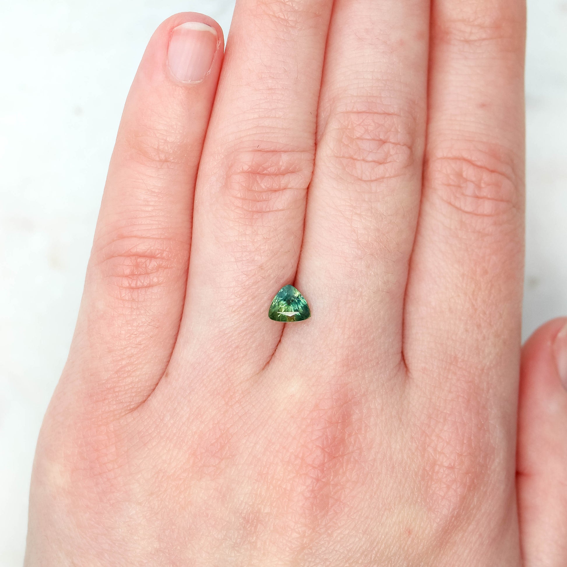 - Color and notes: From a distance the stone appears a teal green color, but up close you can see separations of yellow, green and teal blue. Some natural openings can be seen in the photos, with the most noticeable one being in the bottom right corner.