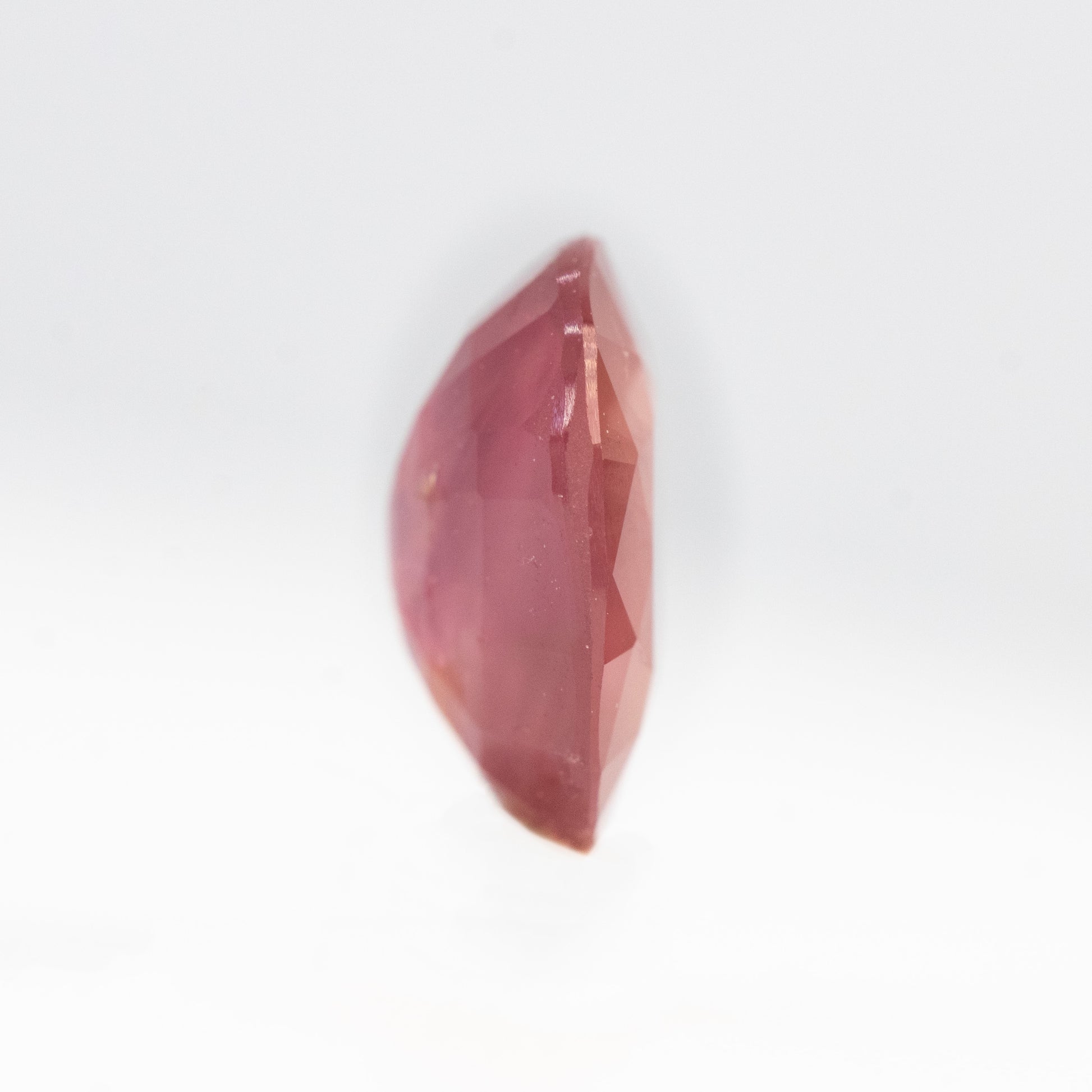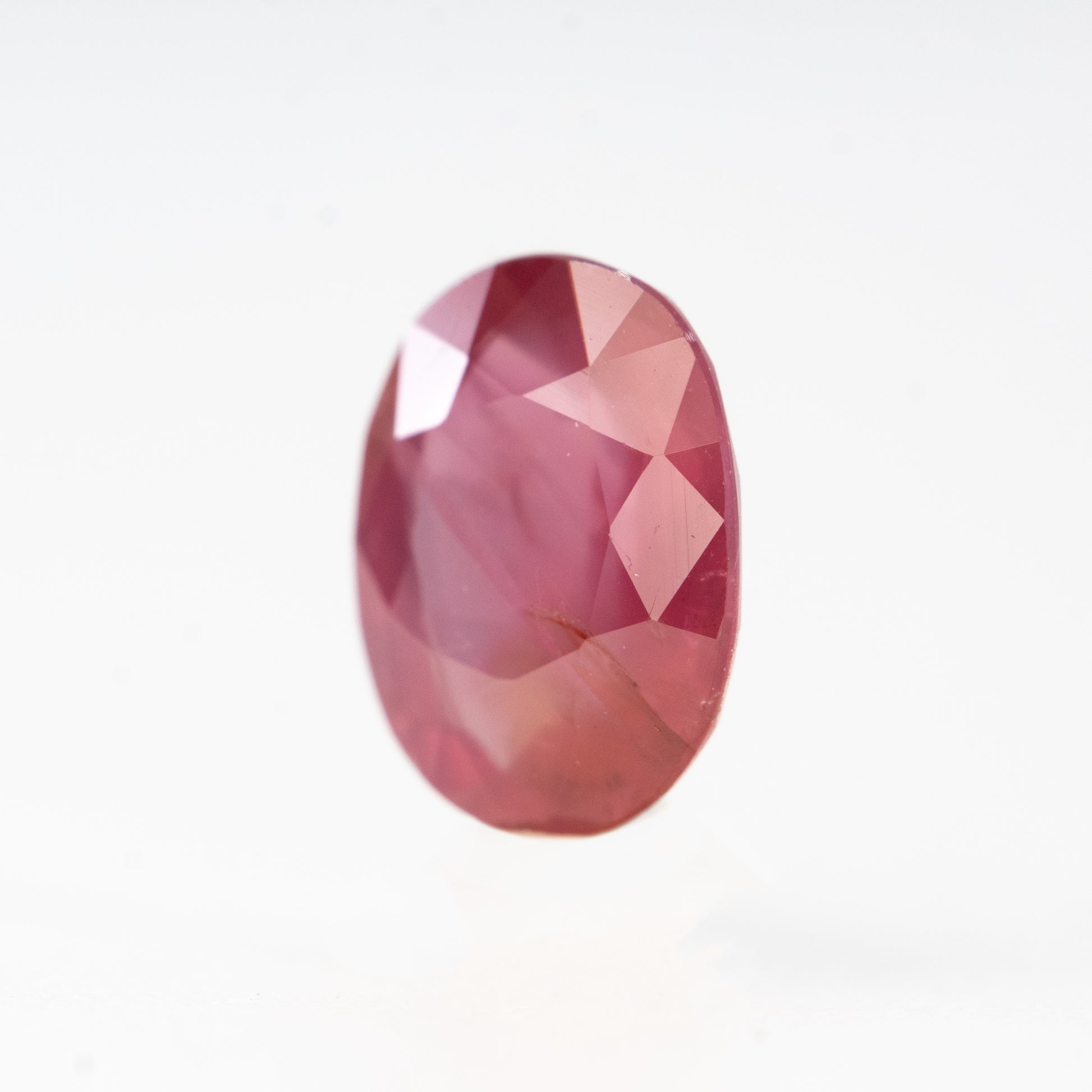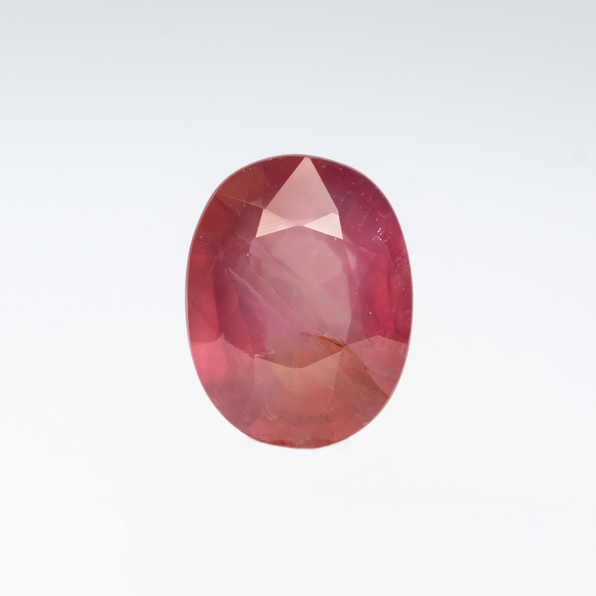 - Color and notes: Red stone with warm undertones. Semi-transparent which shows the fine natural openings of the stone. Nice clarity with a bright sparkle.