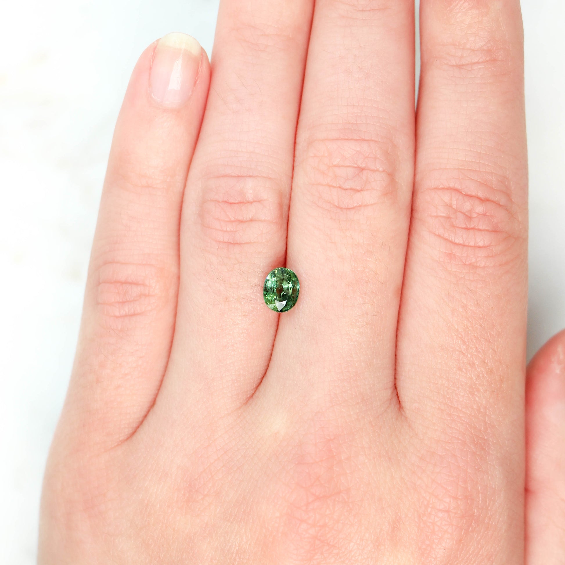- Color and notes: Bright green stone with subtle teal highlights and warm undertones. There are some very small and subtle natural openings and inclusions but they are hardly visible to the naked eye. Nice clarity with a bright shimmer.