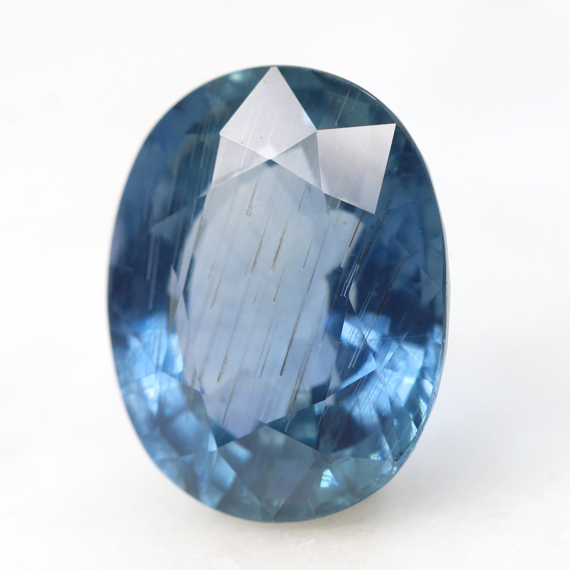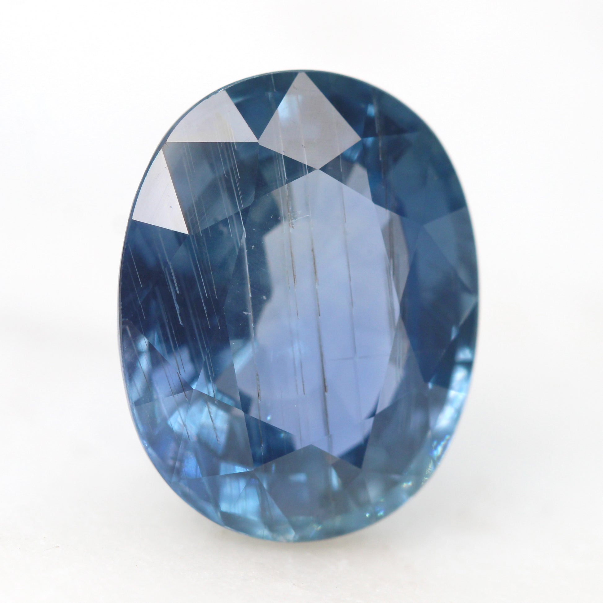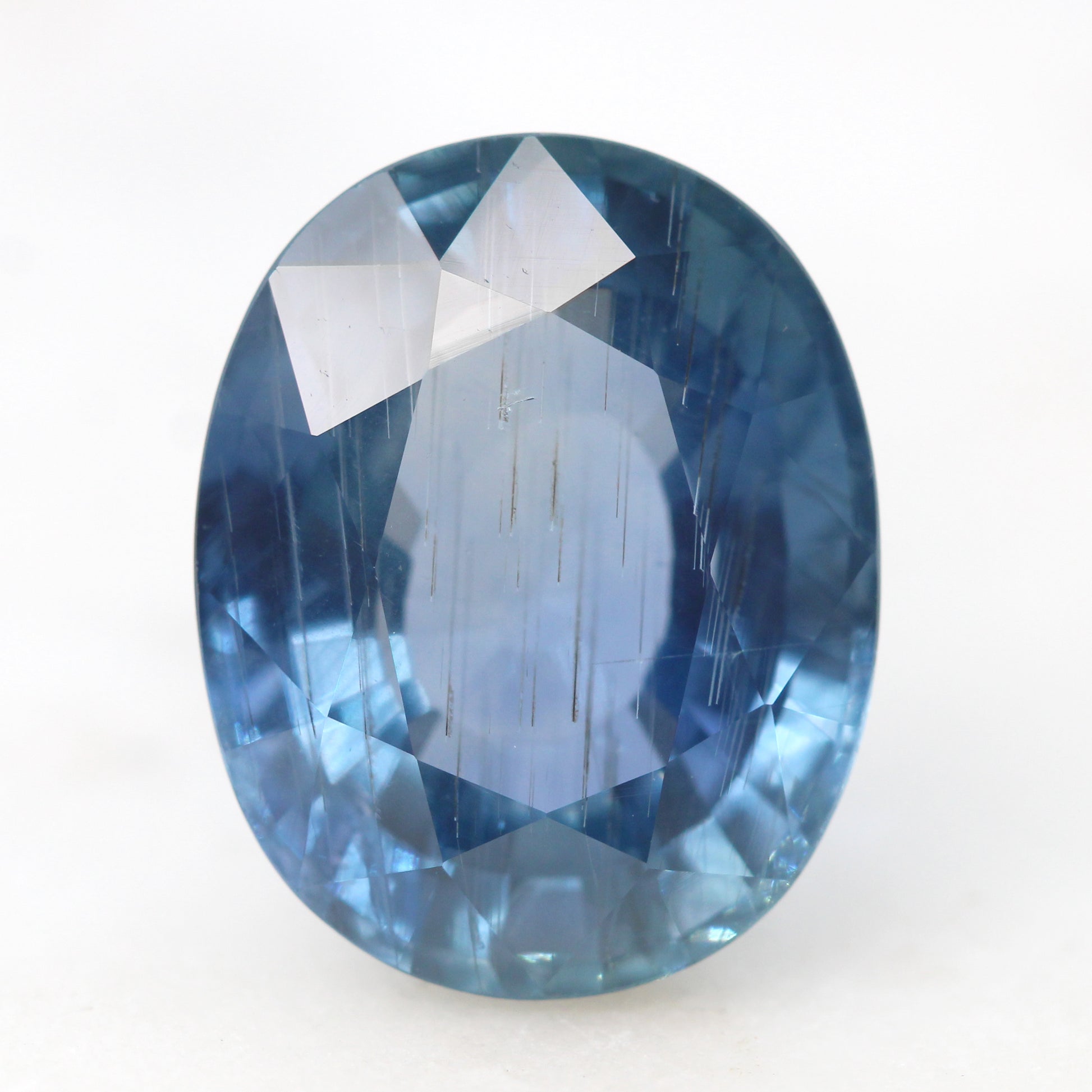 - Color and notes: Light blue sapphire with an icy shimmer. Has some visible rutile inclusions that resemble stars falling from the sky. High clarity that allows lots of light to shine through and create a bright sparkle within the stone.