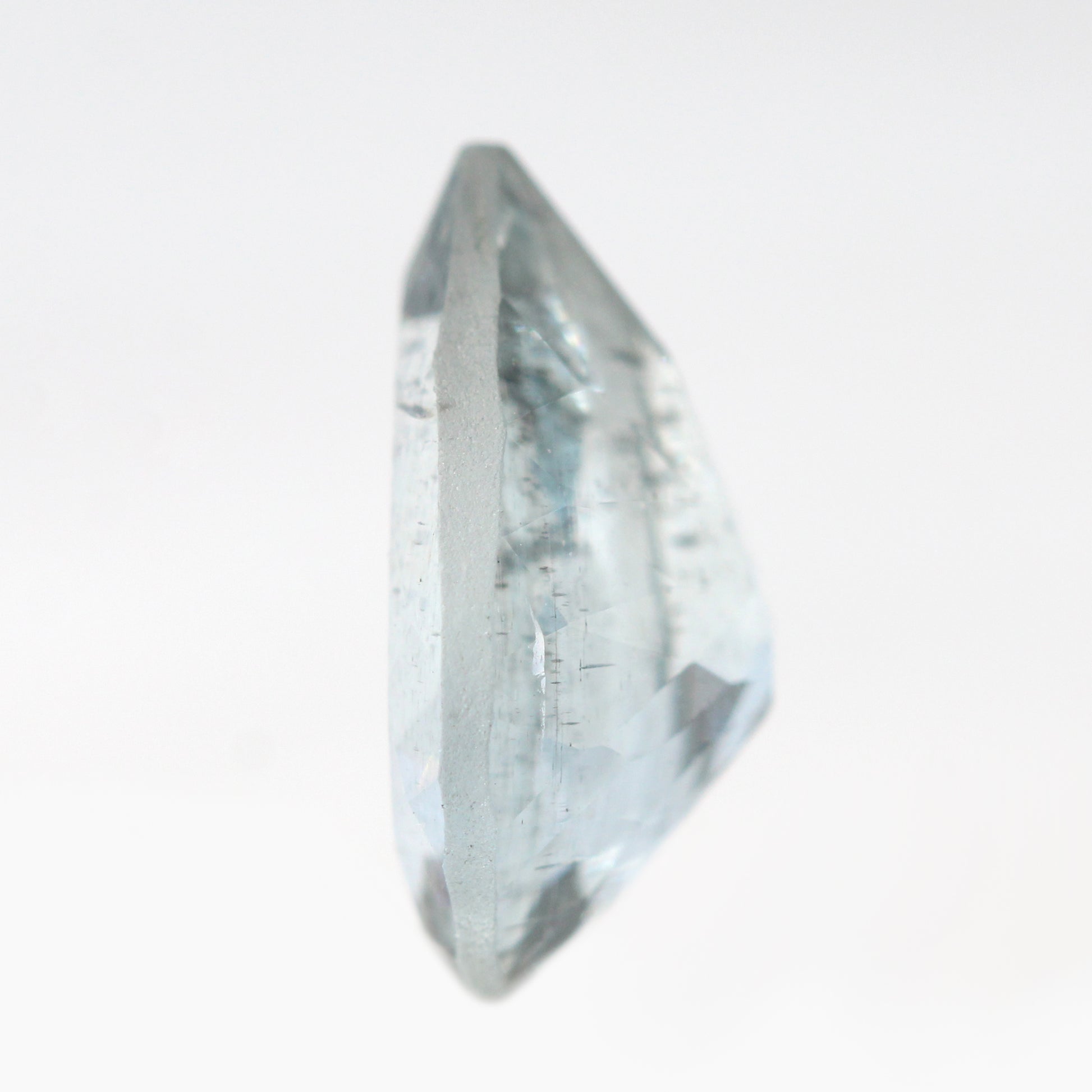 - Color and notes: Stunningly bright, clear blue stone with dark natural inclusions. There are also some gray tones throughout depending on the light. High clarity and an ethereal and icy shimmer.