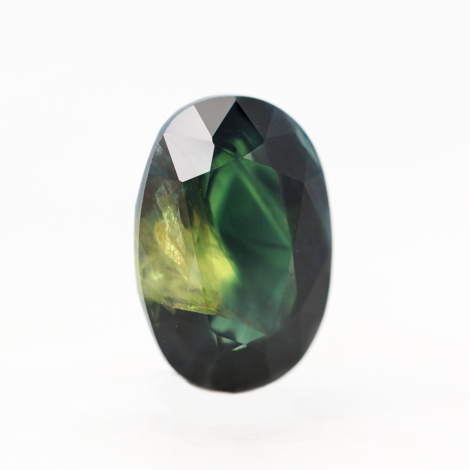 - Color and notes: Deep green stone with a golden patch of yellow towards the center of the stone. The pool of yellow allows more light in, while the rest of the stone fades into a forest green. Some natural openings are slightly visible, but cause the stone to appear as if the greens and yellows are swirling together.