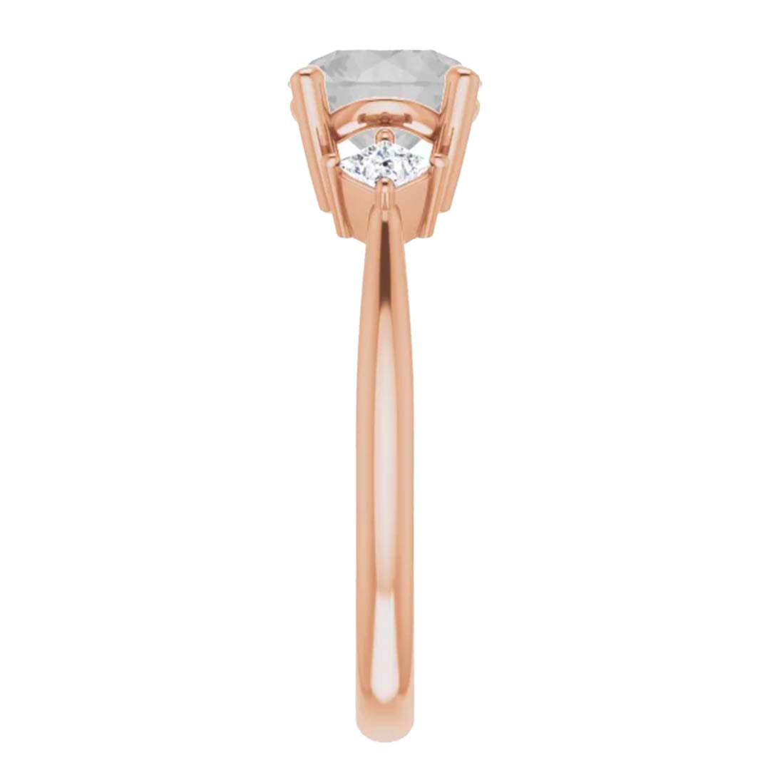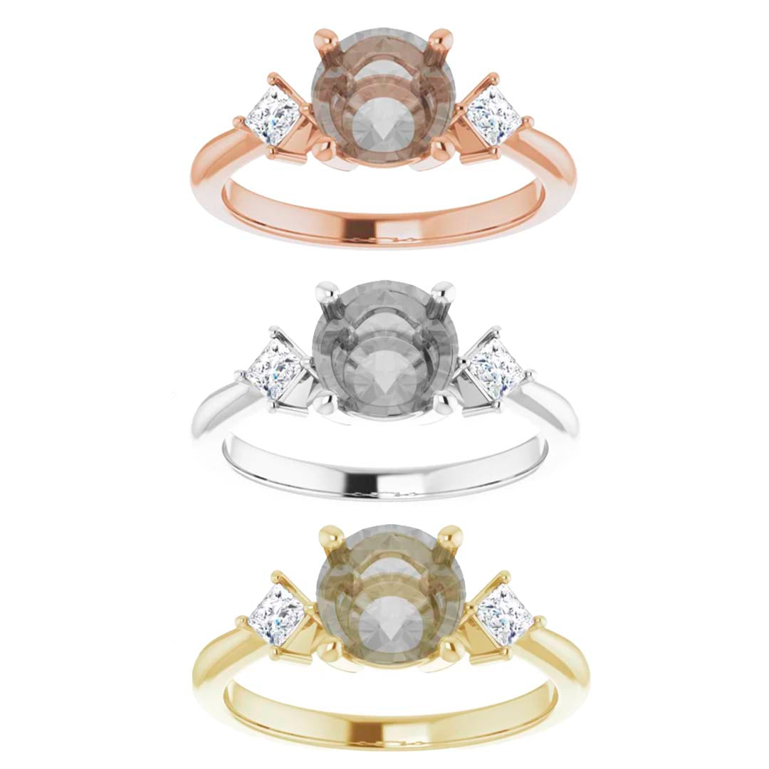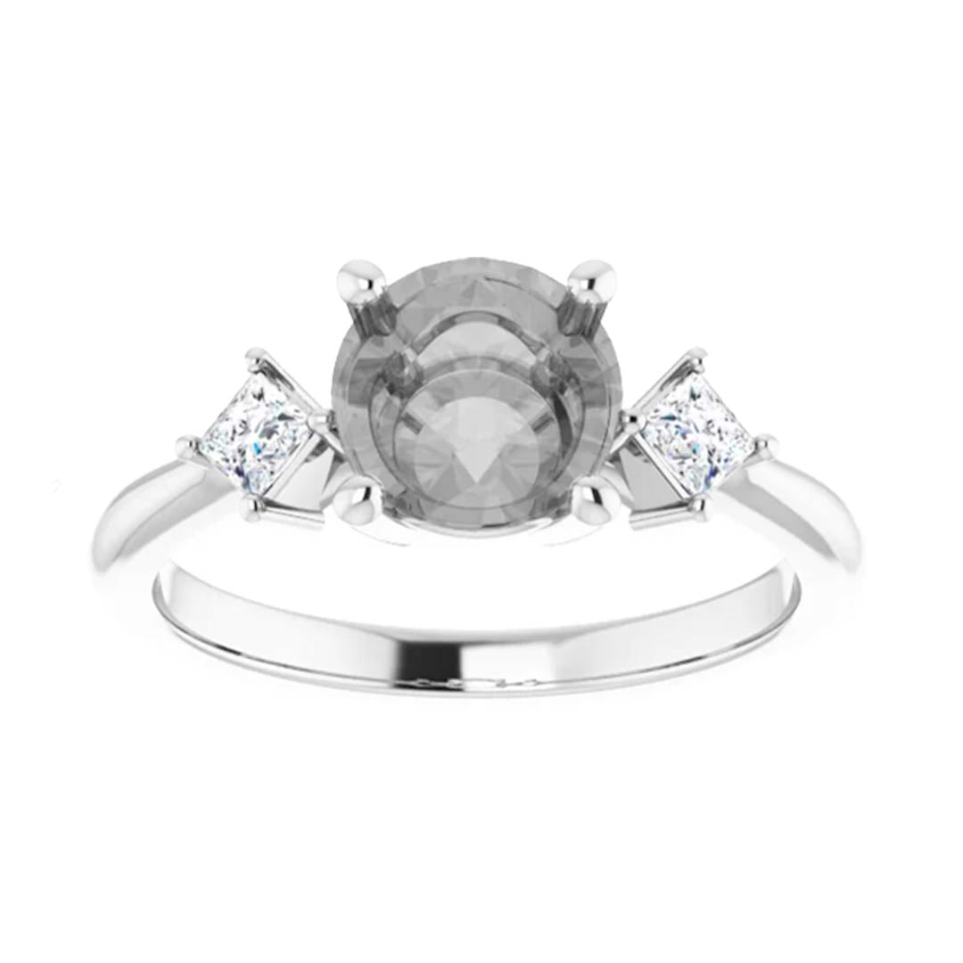 • Beautifully minimalistic setting with two kite set princess accent stones