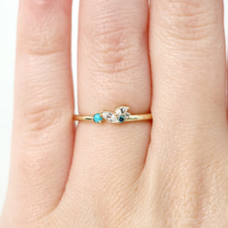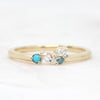 • Accent stones include two brilliant cut marquise sapphires, one 1mm brilliant cut round aquamarine, one 1.75mm brilliant cut round teal blue diamond, one 2mm cabochon cut round turquoise