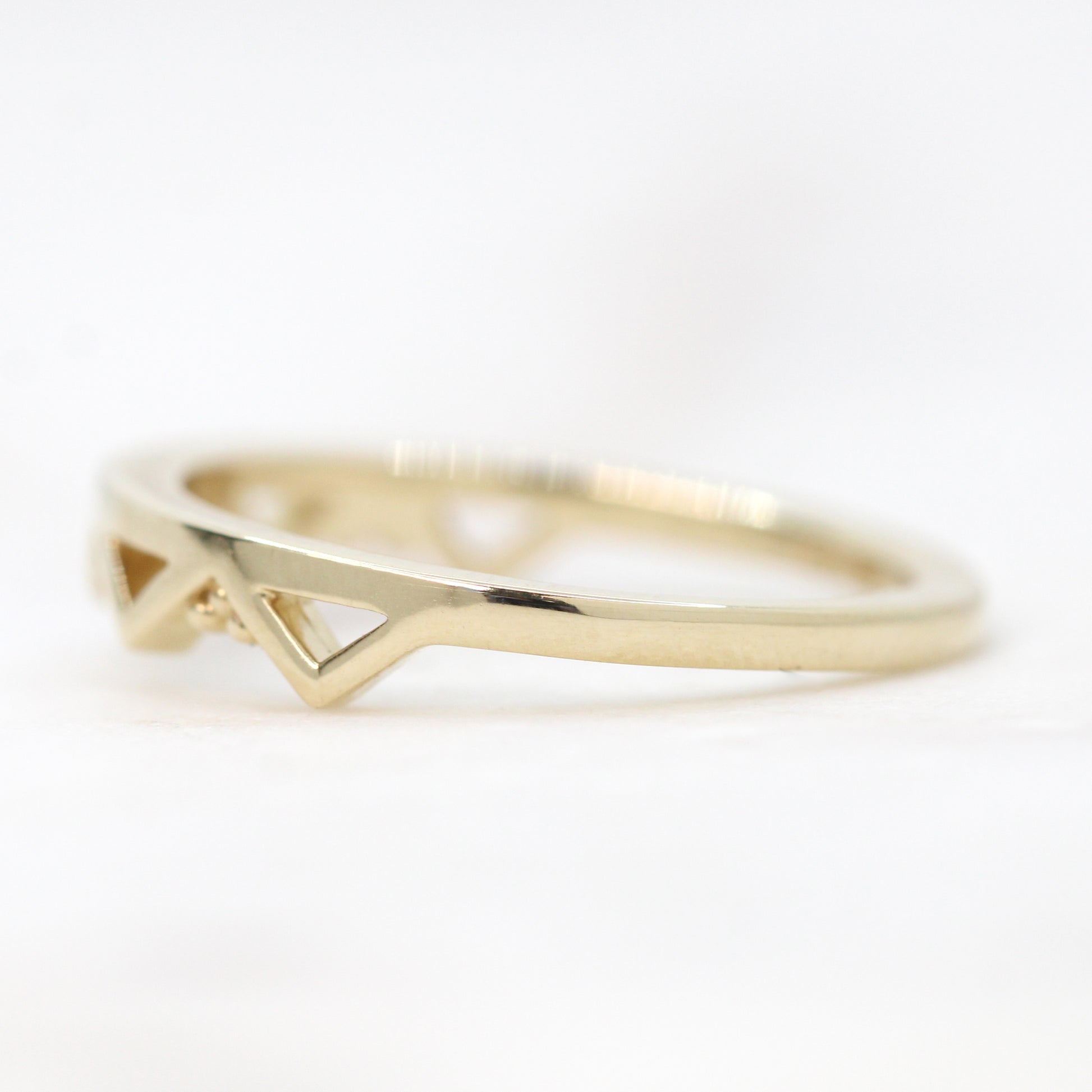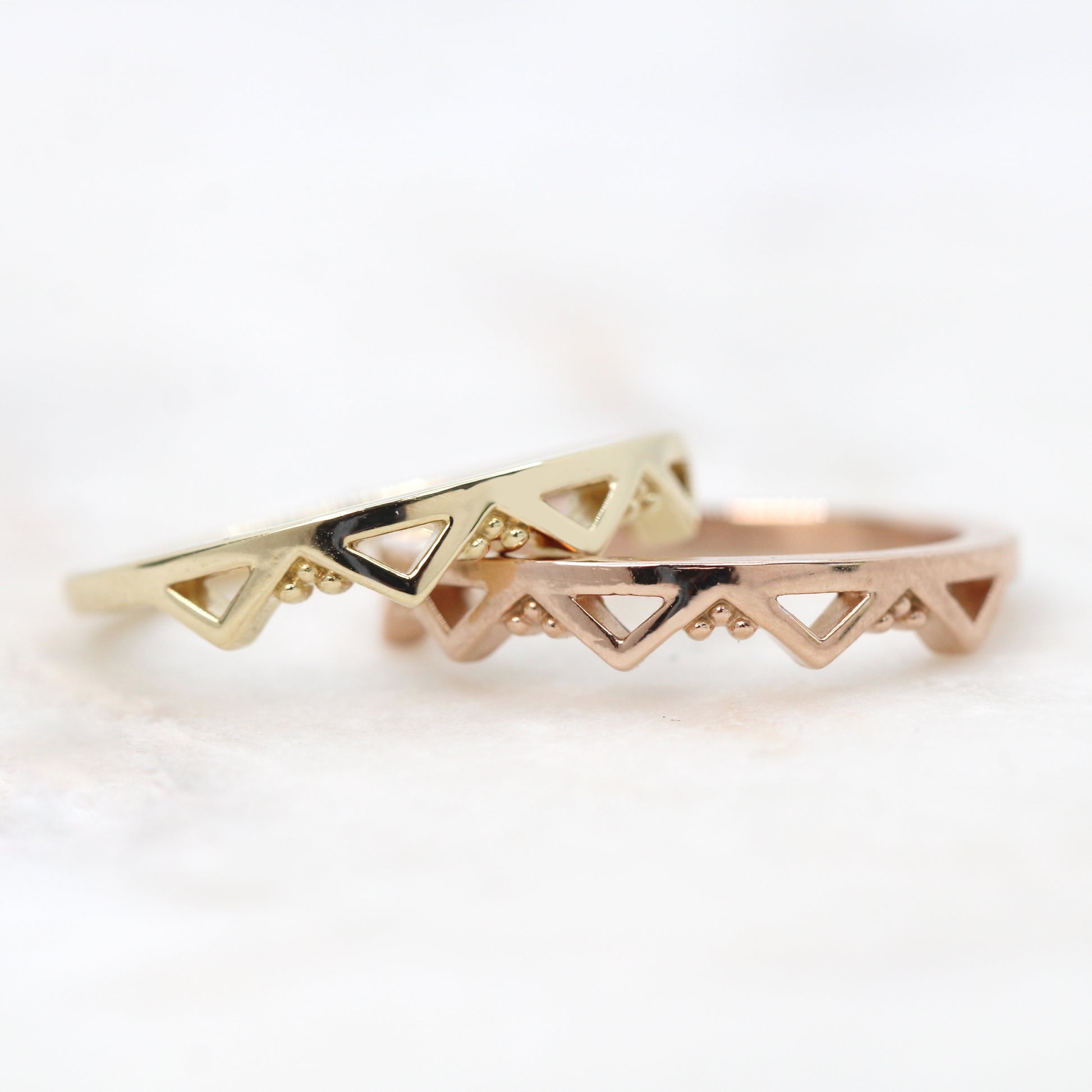 • A unique & modern wedding band with a geometric design inspired by the mountains.
