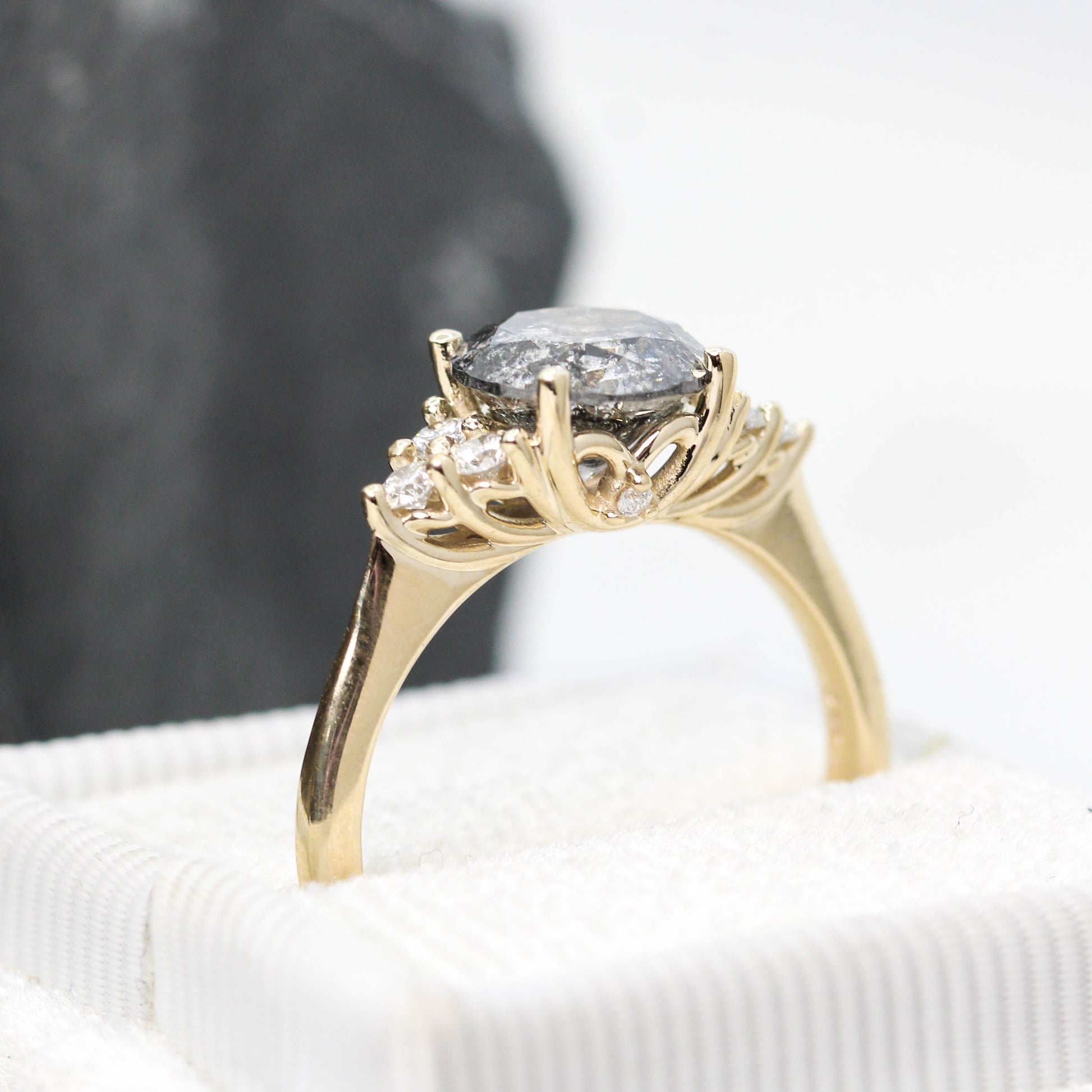 We often work with amazing and stunning natural diamonds that we call Celestial diamonds, which the industry sometimes calls salt and pepper diamonds, or galaxy diamonds. We worked with these diamonds before they were somewhat normal on the scene. Everything about the diamond is a real diamond, and possibly even more real than your "standard" diamond that may have been heat treated or had its inclusions microscopically removed/filled. The perfectly imperfect stones are each unique, and since they are not your standard mass-purchased stone in our industry, it isn't worth the effort for "bad guys" to make fakes that look like these.