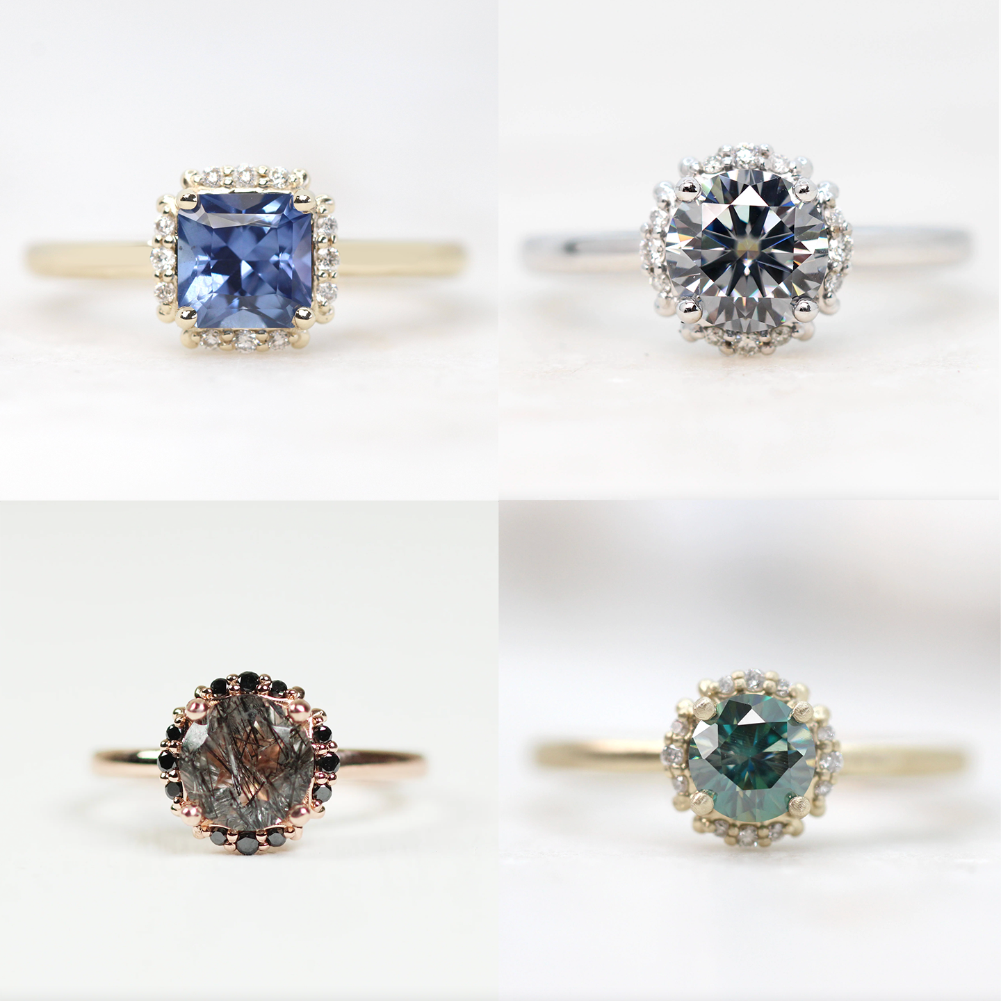 Pieces that are customized cannot be returned, and anything customized for you, is just for you. Please consider coming to visit us at our studio in Wilmington, Delaware to view stones and settings in person! We are also happy to do a Zoom appointment or send videos to help you with your purchase.
