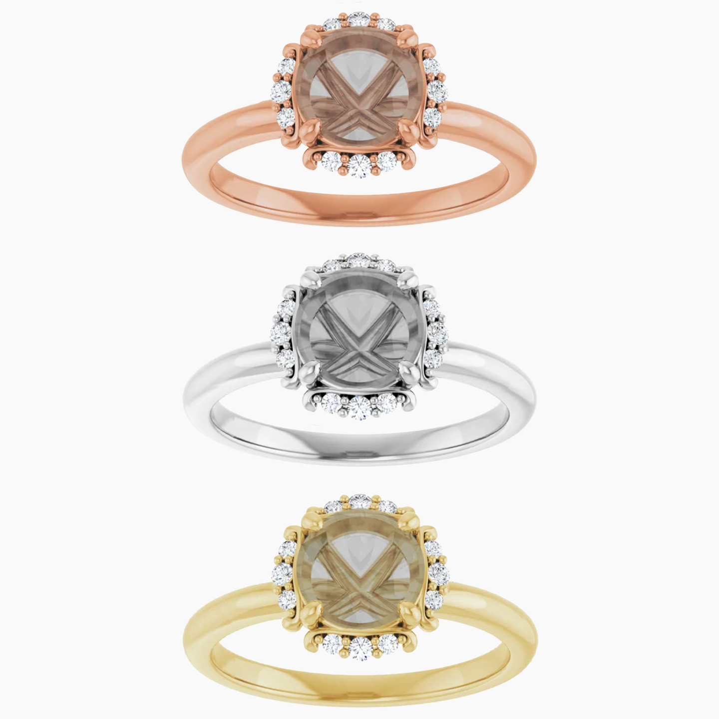 - This pretty halo is designed to hold your stone low for comfort, but is given some height for maximum shimmer.