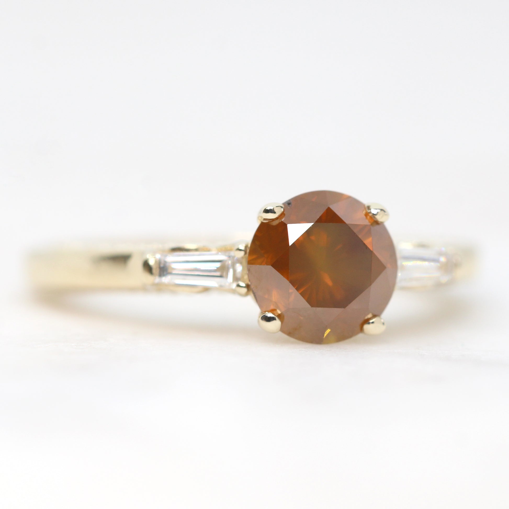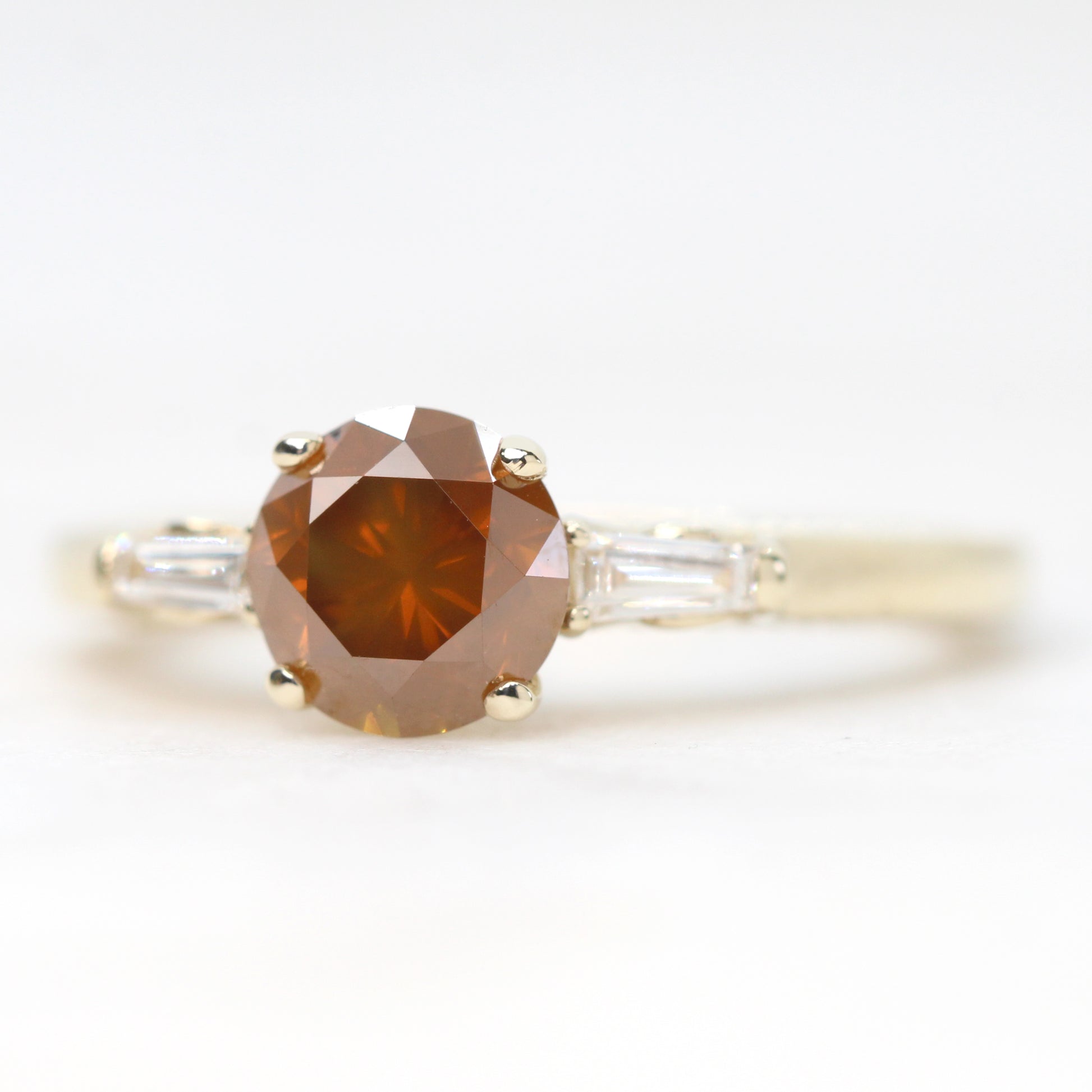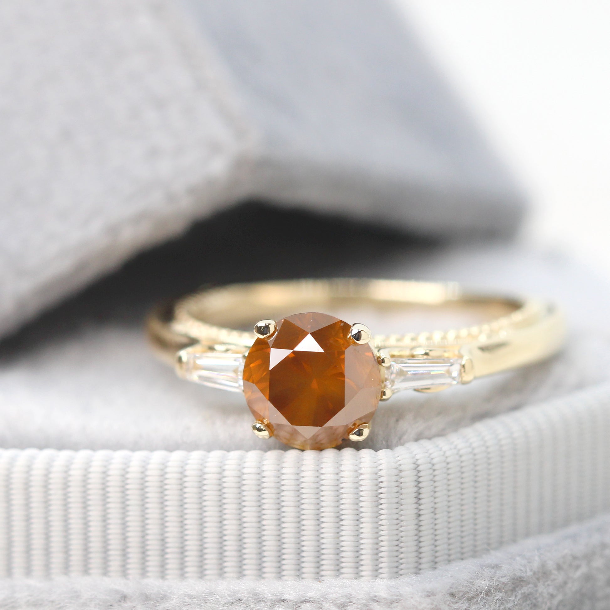 Bella Ring with a 1.29 Carat Round Orange Salt and Pepper Diamond and White Accent Diamonds in 14k Yellow Gold - Ready to Size and Ship