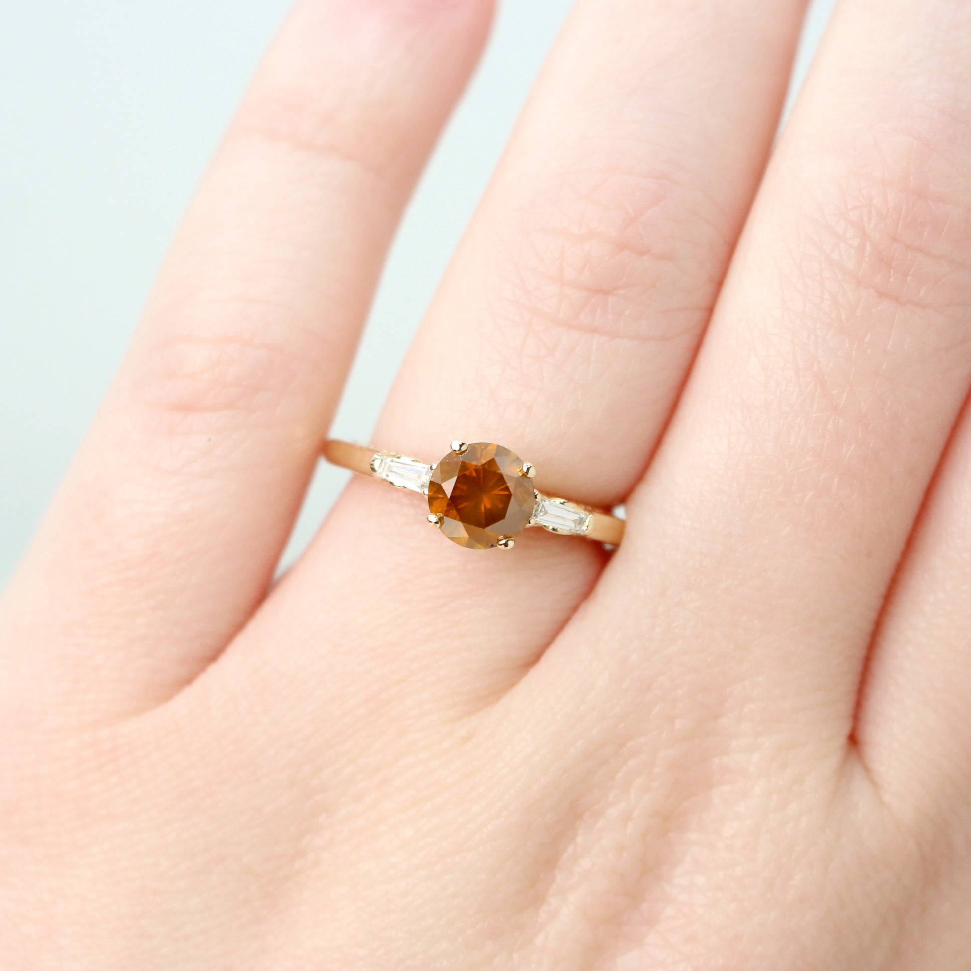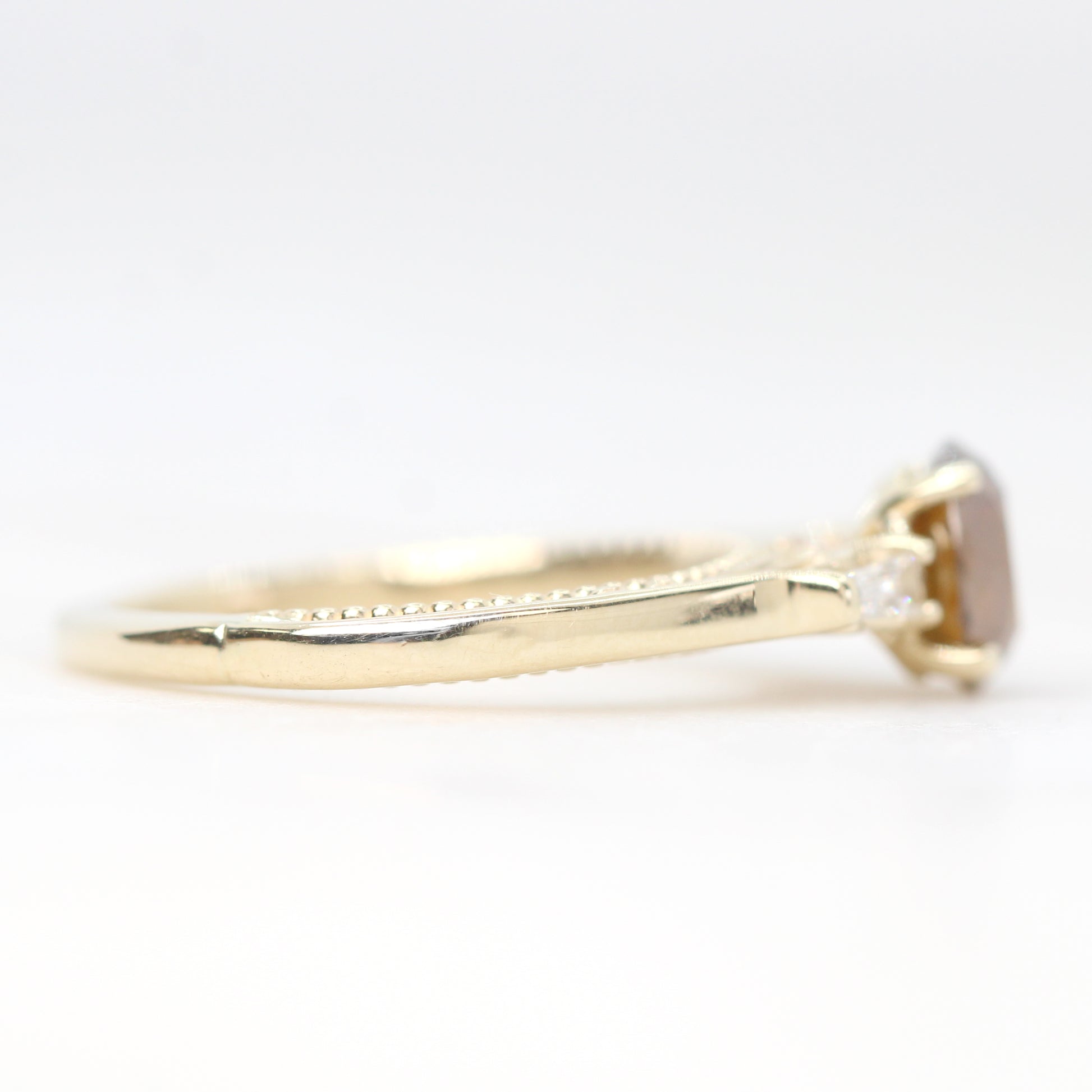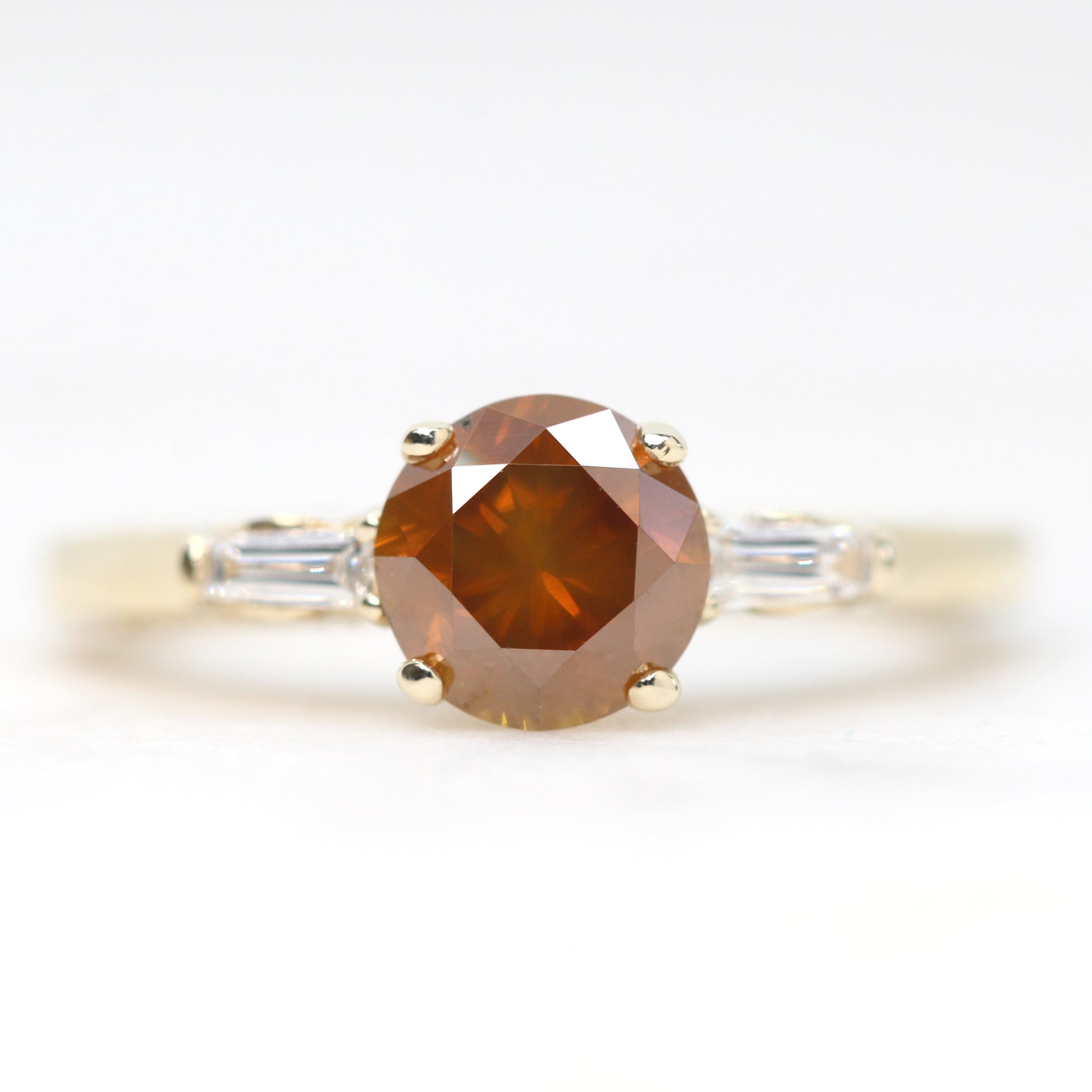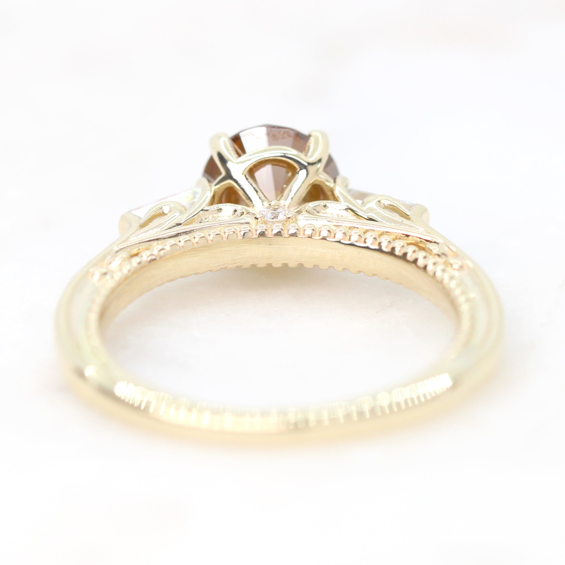 Bella Ring with a 1.29 Carat Round Orange Salt and Pepper Diamond and White Accent Diamonds in 14k Yellow Gold - Ready to Size and Ship