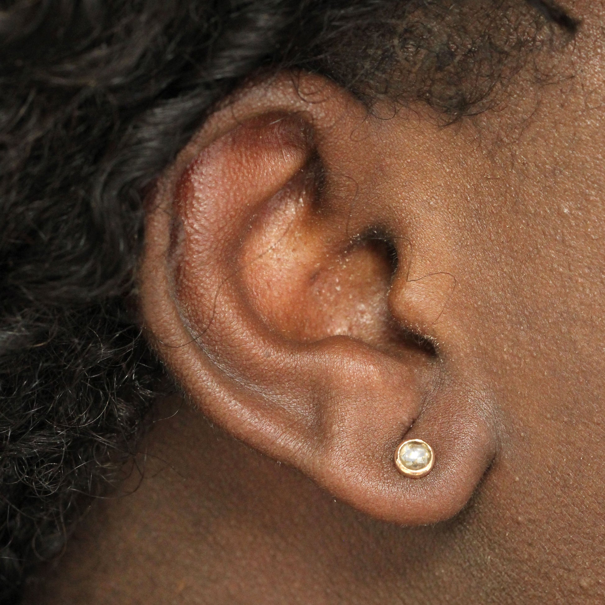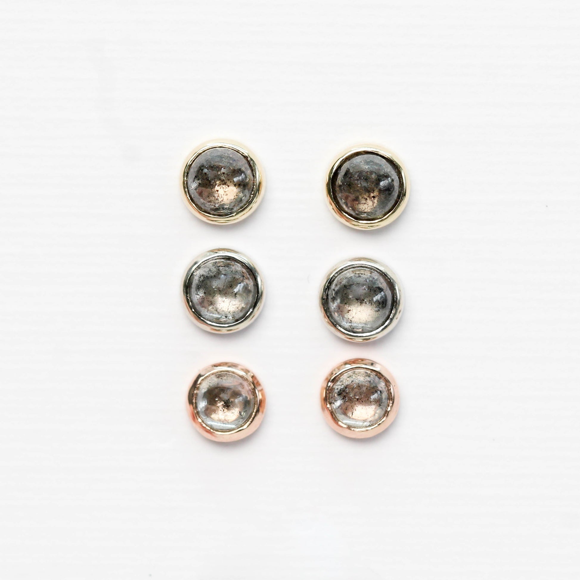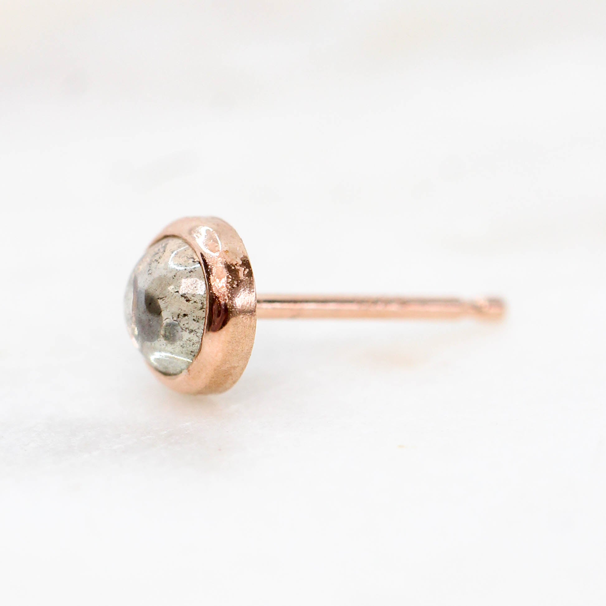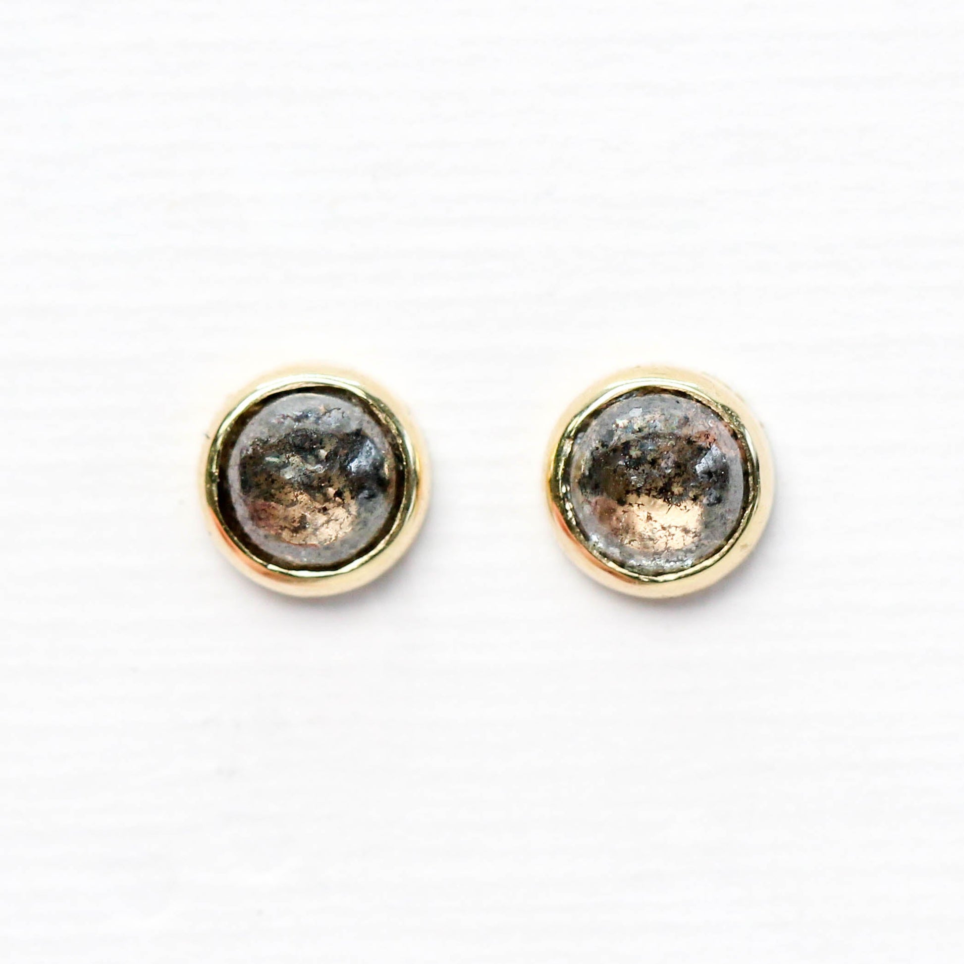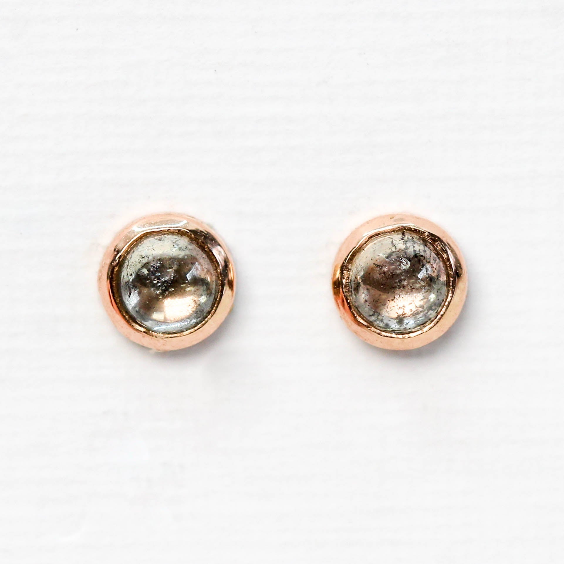 Bezel-Set Round Cabochon Salt and Pepper Diamond Earrings in 14k Rose Gold - Ready to Ship