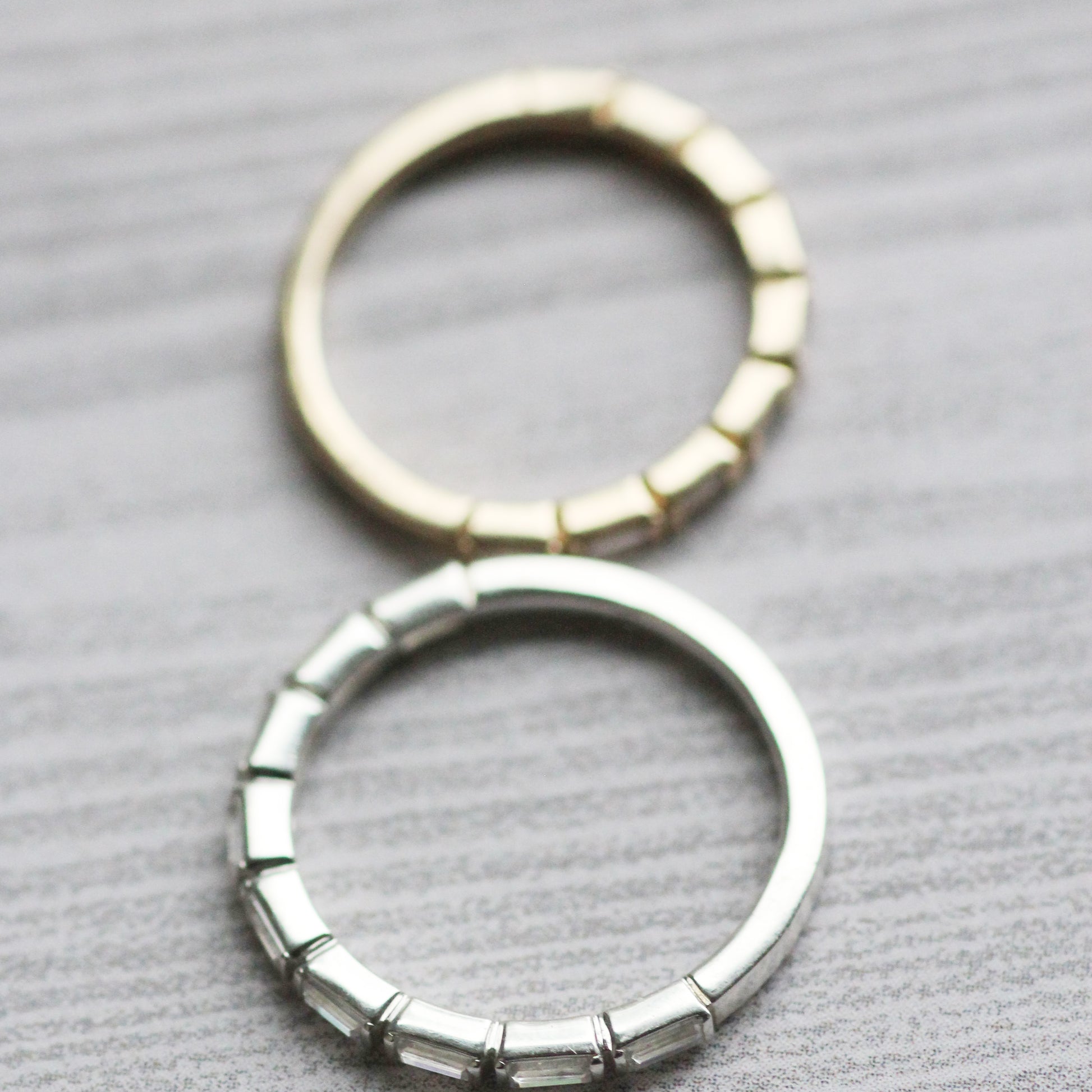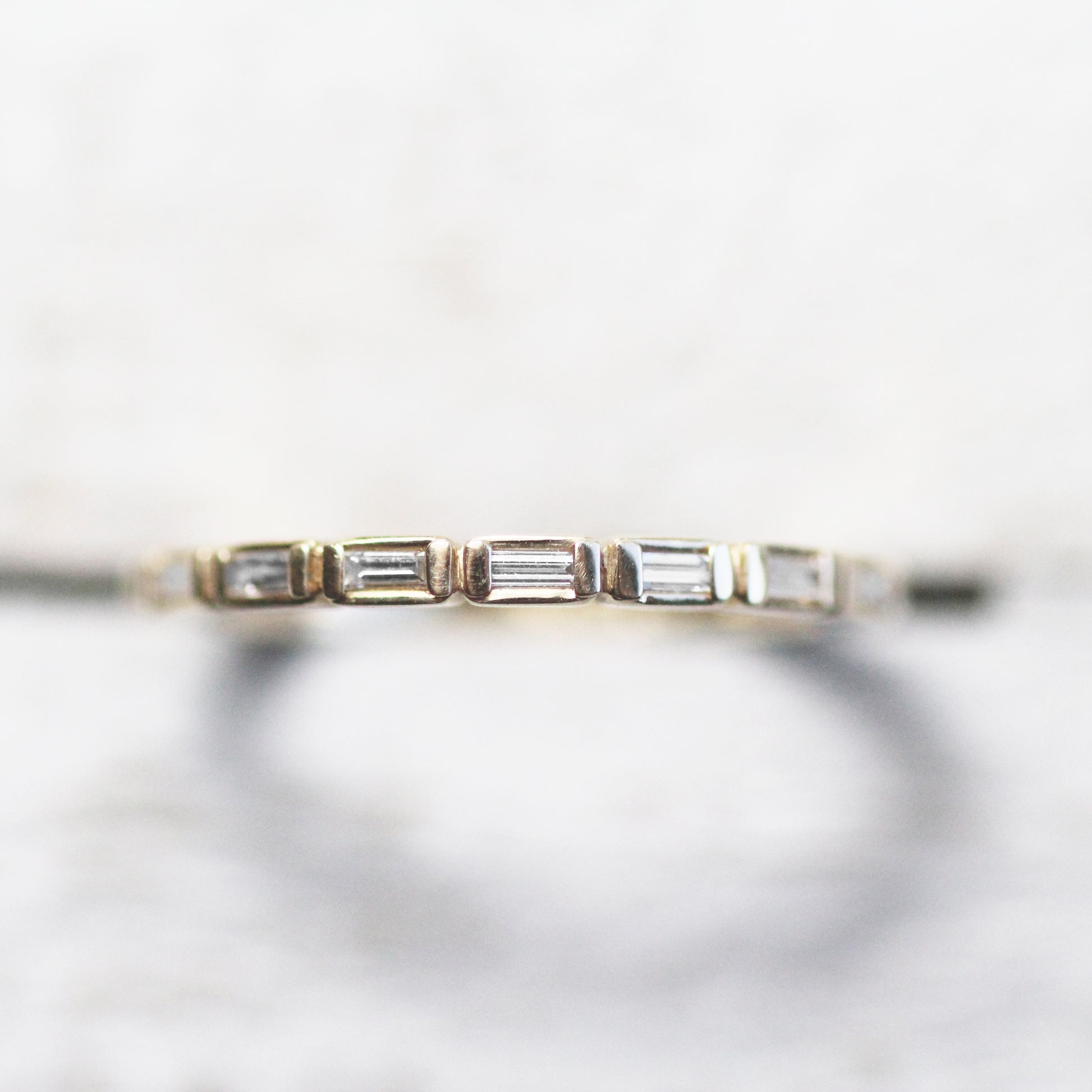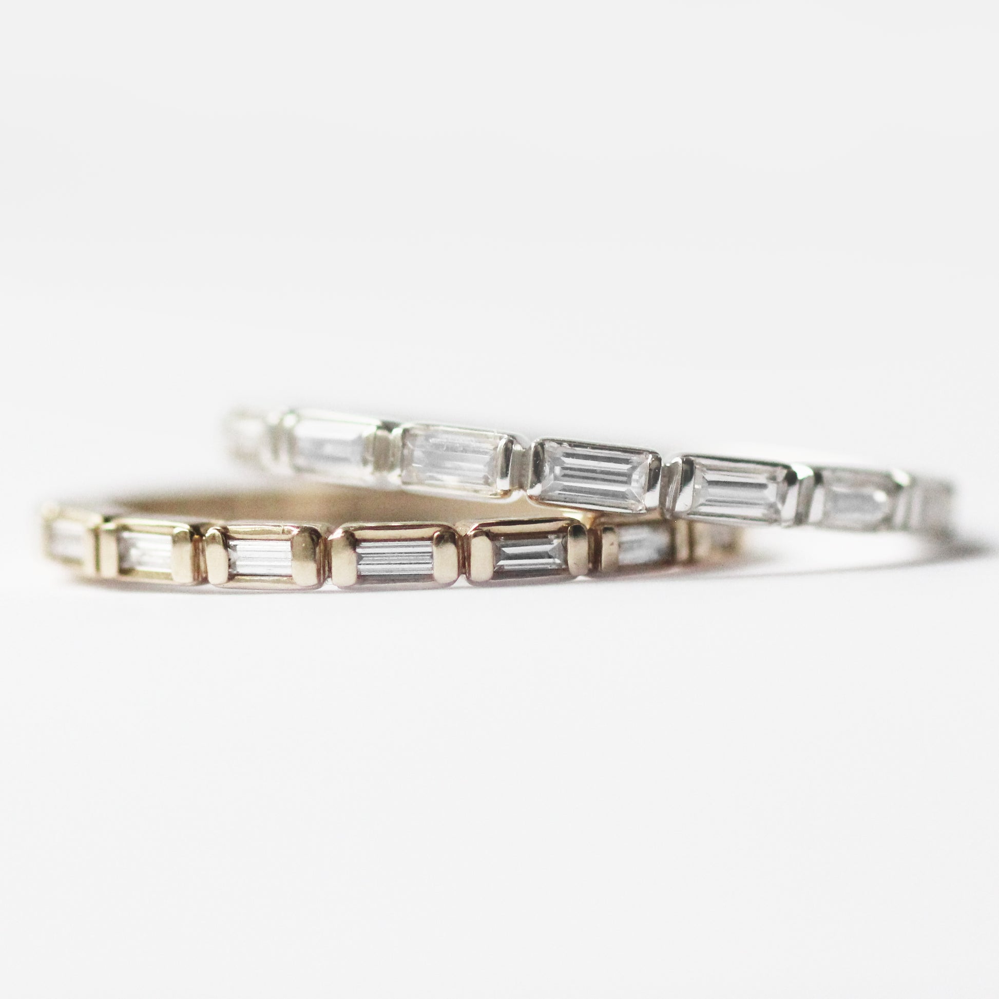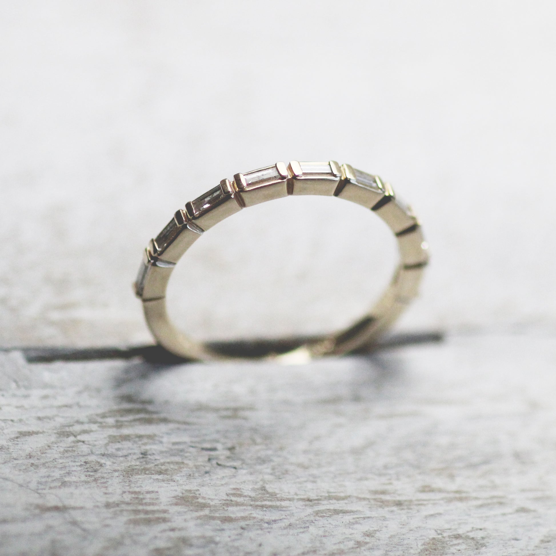 - Accent stones include nine 3 x 1.25mm baguette SI2-SI3 g-h diamonds.